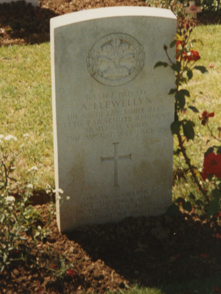 Foto van grafsteen van A. LLewellyn.Tekst achterop: ...