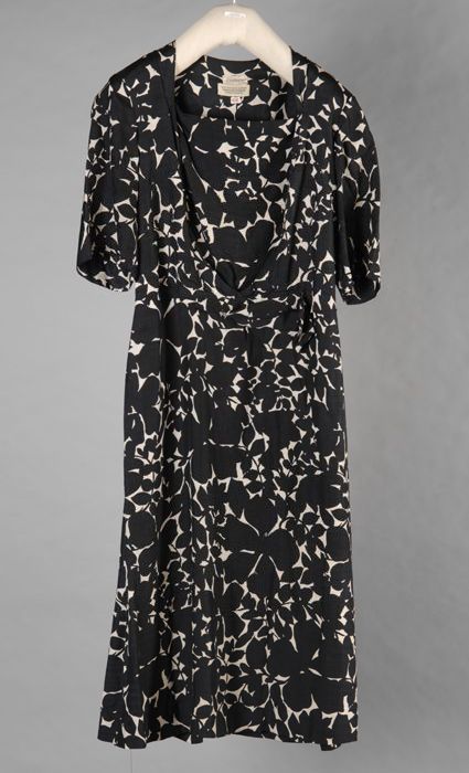 Zwart-witte gebloemde jurk met strik op voorzijde en...