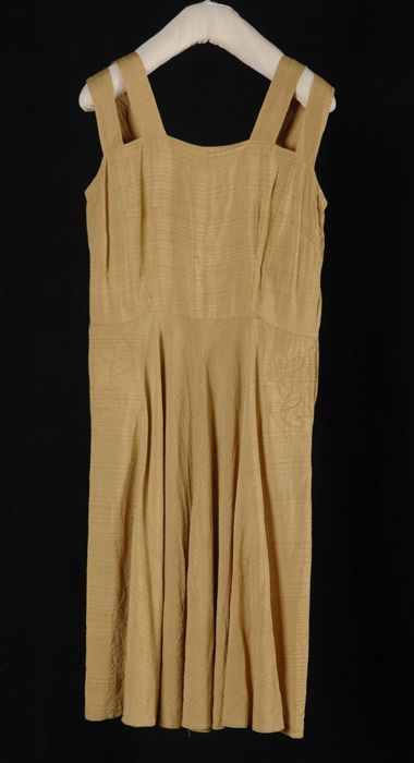 Goudgele zomerjurk met wijde rok, strak lijfje met d...