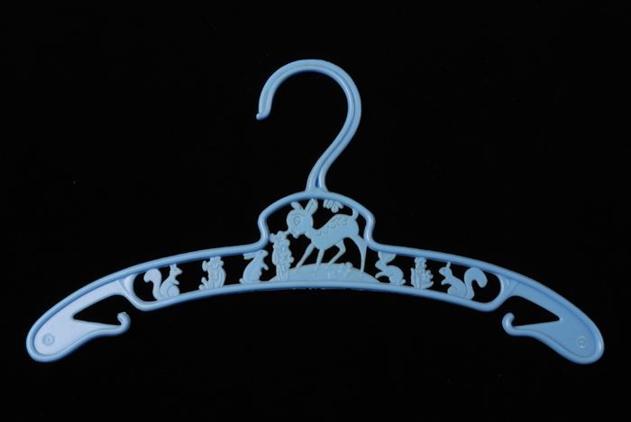Twee kleerhangers van lichtblauwe kunststof met dier...