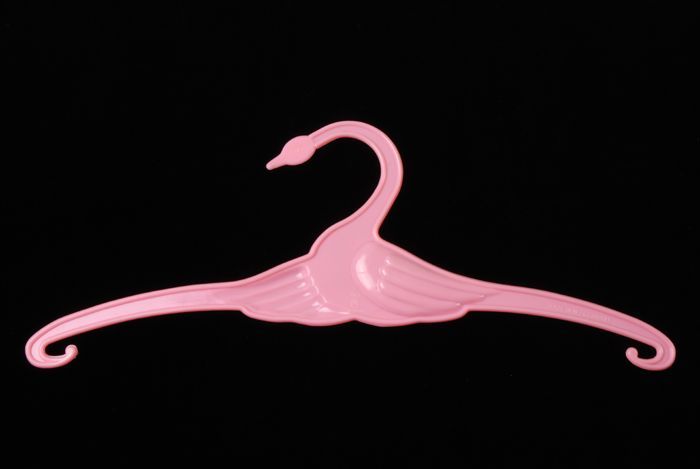 Kleerhanger van roze kunststof, met afbeelding zwaan...