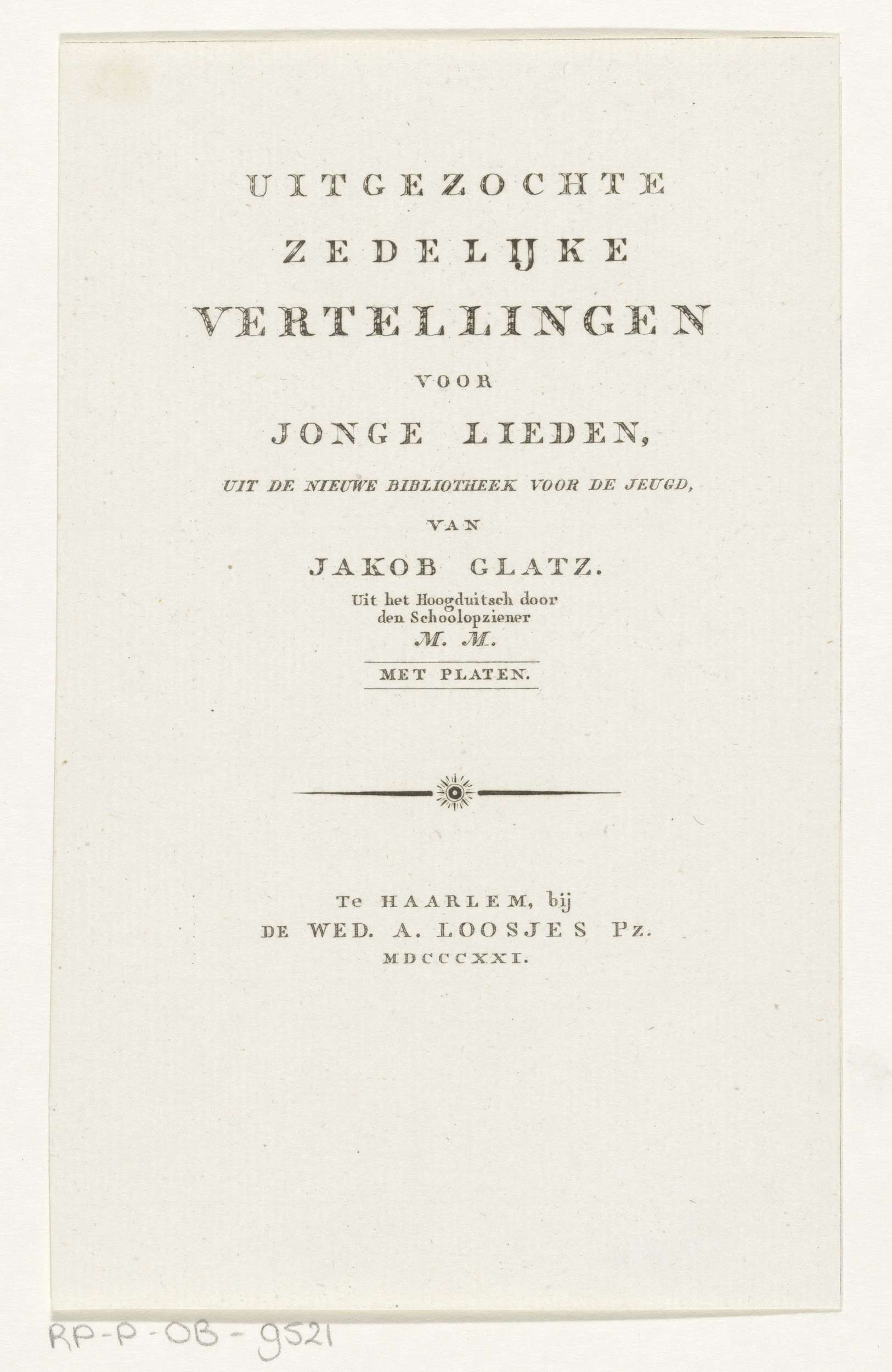 Titelpagina voor: Jakob Glatz, Uitgezochte zedelijke...