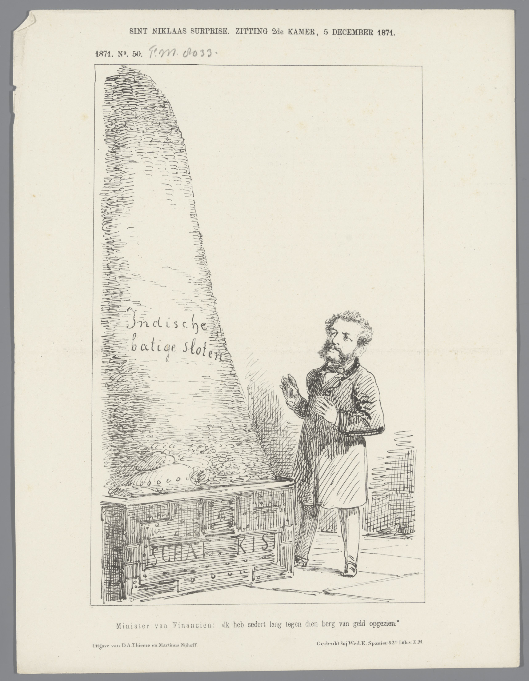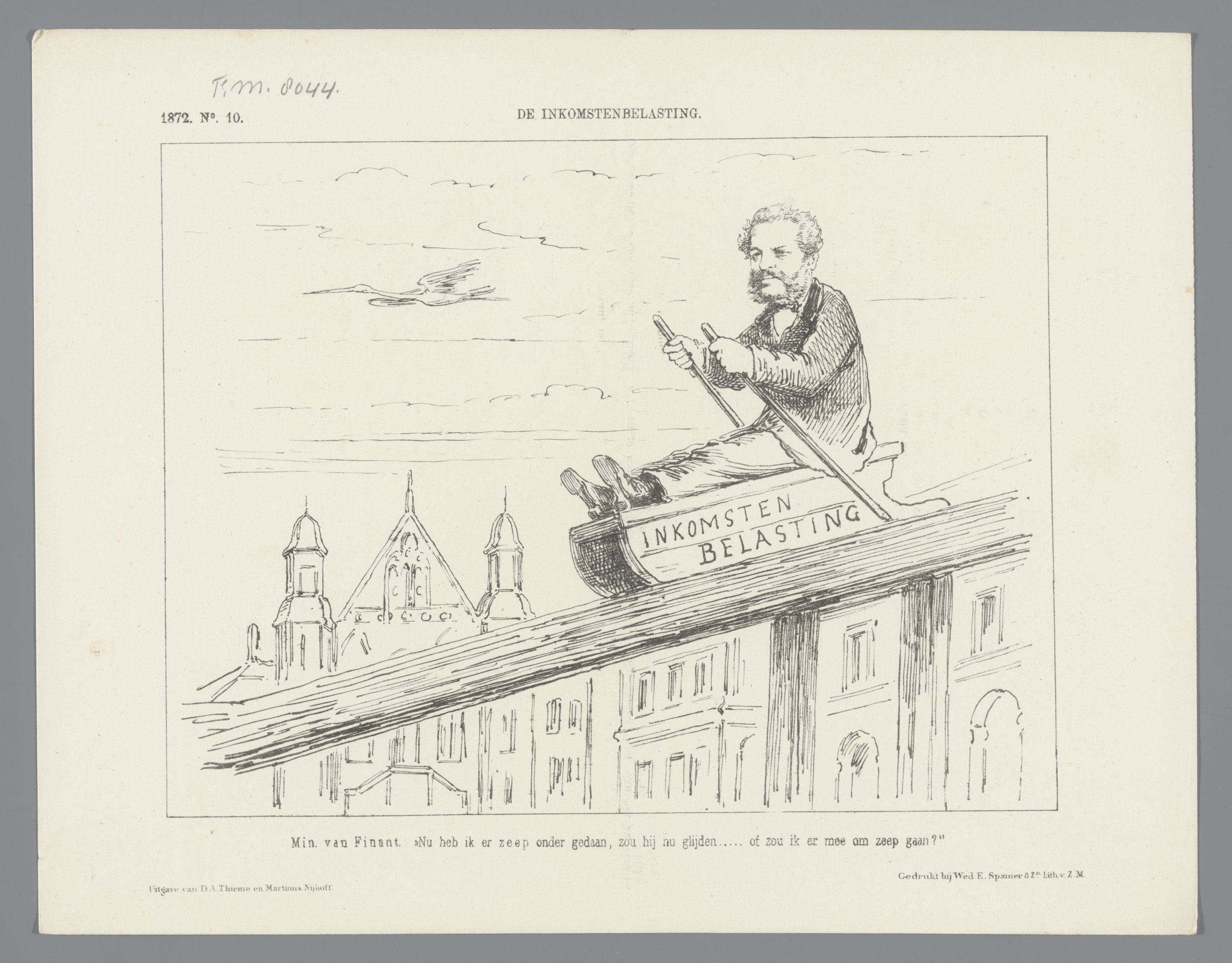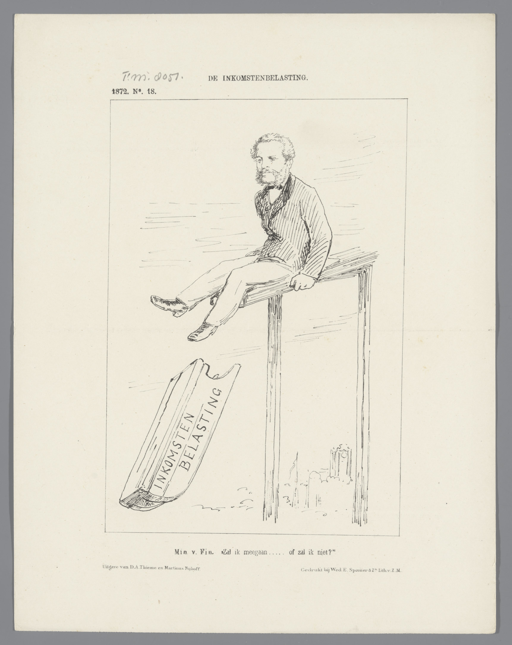 Spotprent op Blussé en zijn inkomstenbelasting, 1872