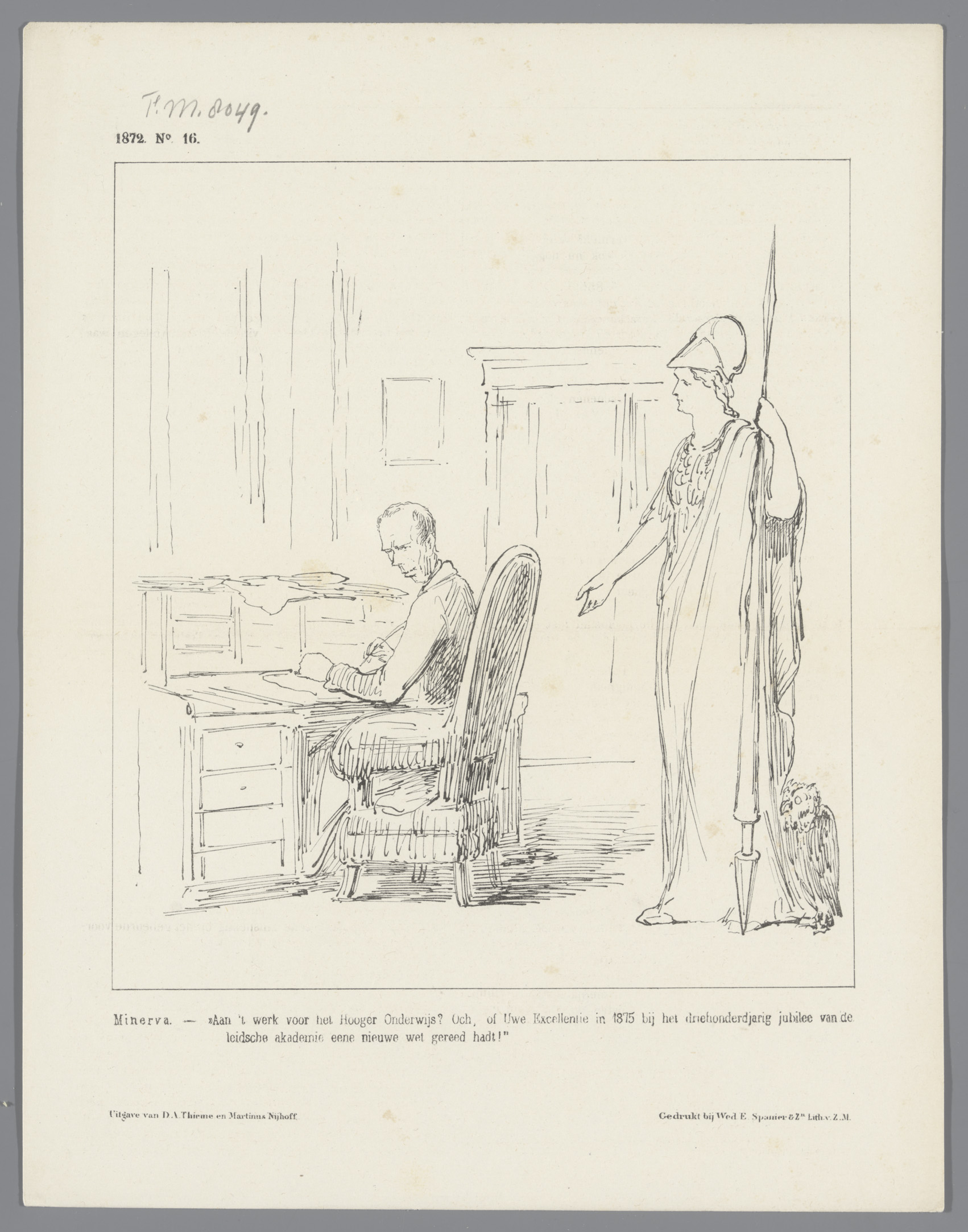 Spotprent op Thorbecke en de wet op het hoger onderw...