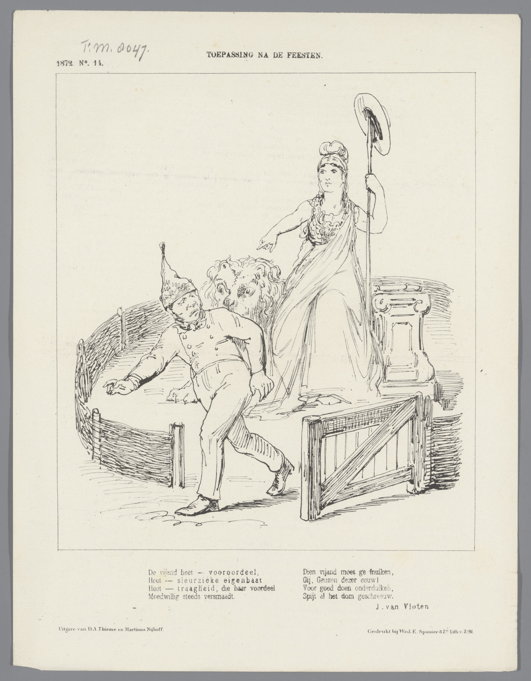 Spotprent op het ontslag van minister Engelvaart, 1871