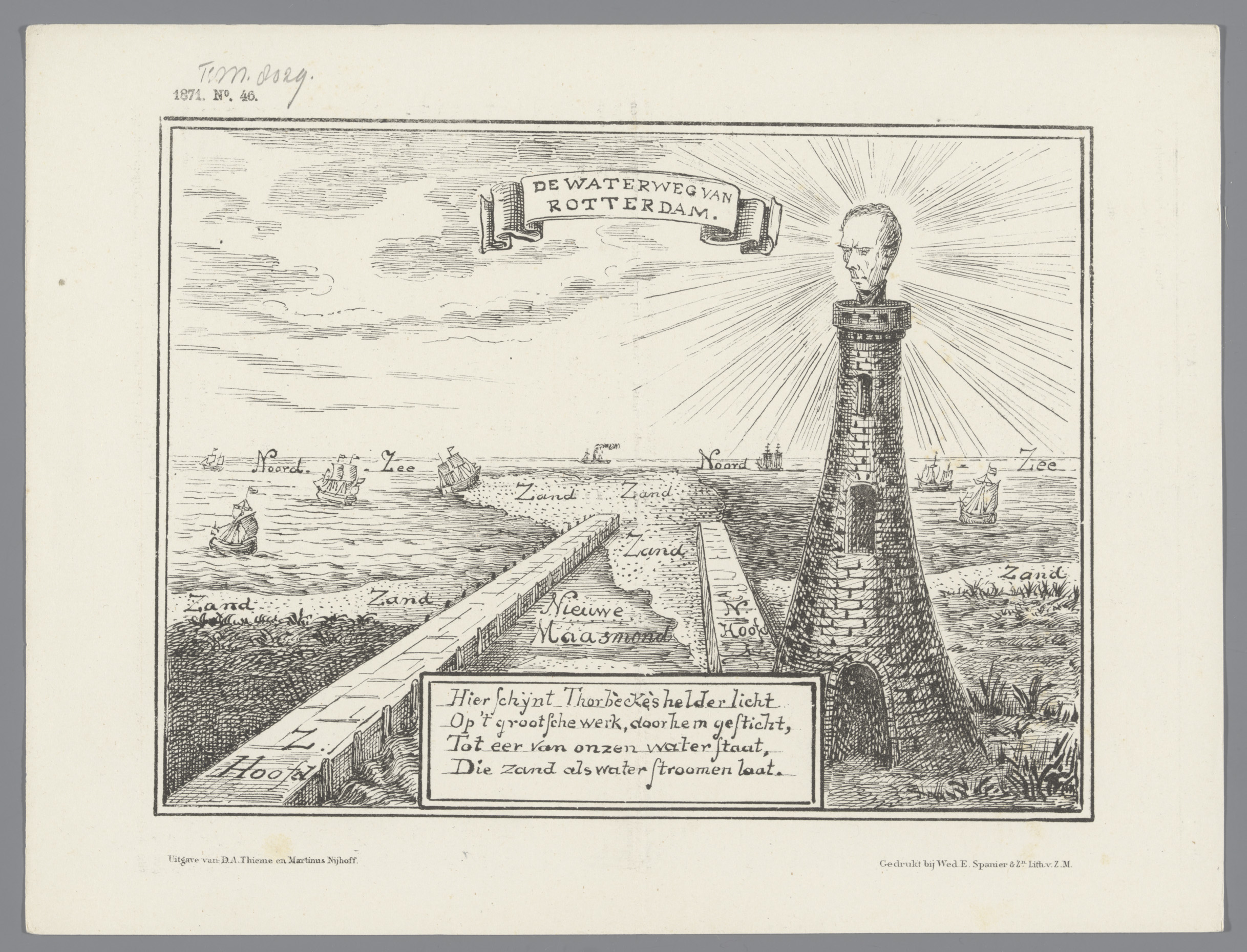 Spotprent op Thorbecke en de waterweg van Rotterdam,...