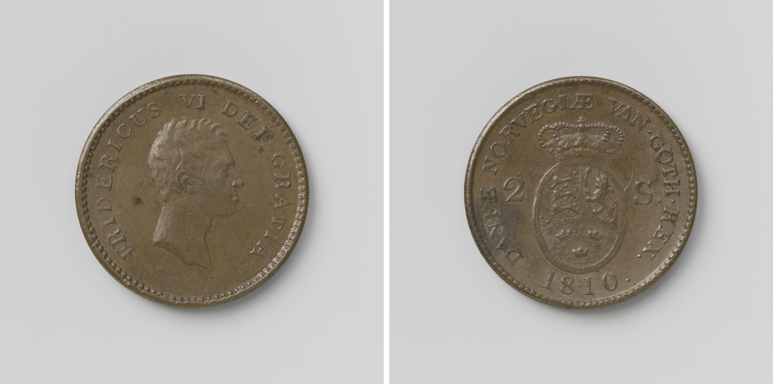 Frederik VI, koning van Denemarken, noodmunt van twa...