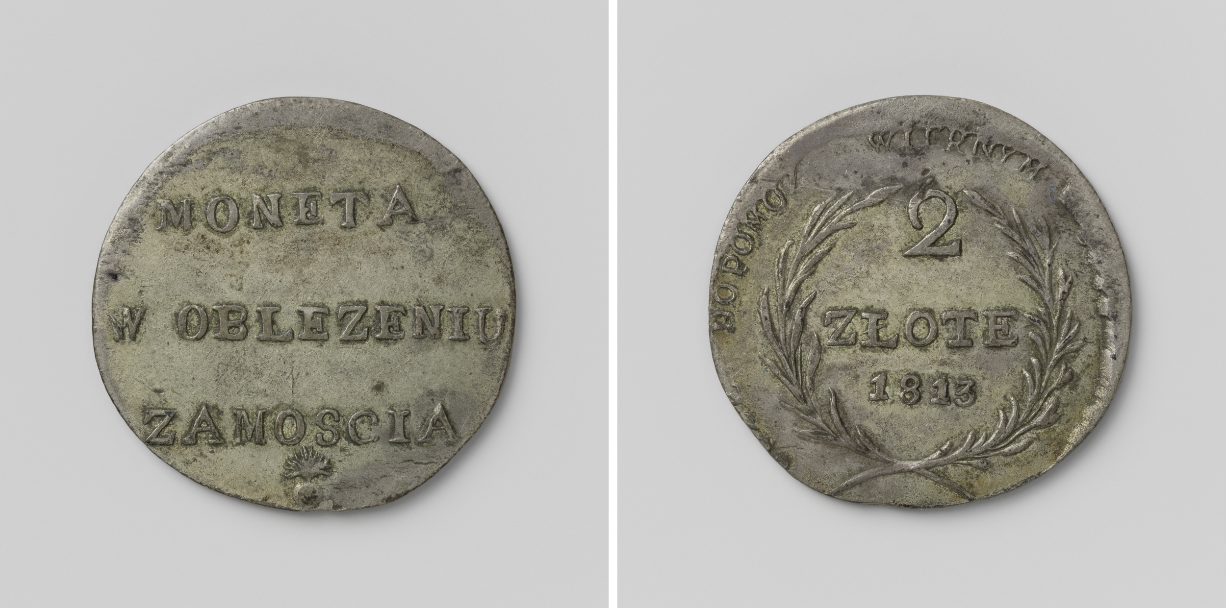 Twee zlote, noodmunt van Zamosk, geslagen tijdens he...