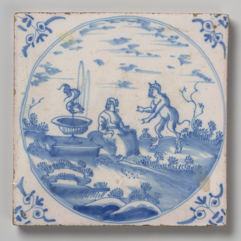 tegel van aardewerk met tinglazuur, voorstellende: s...