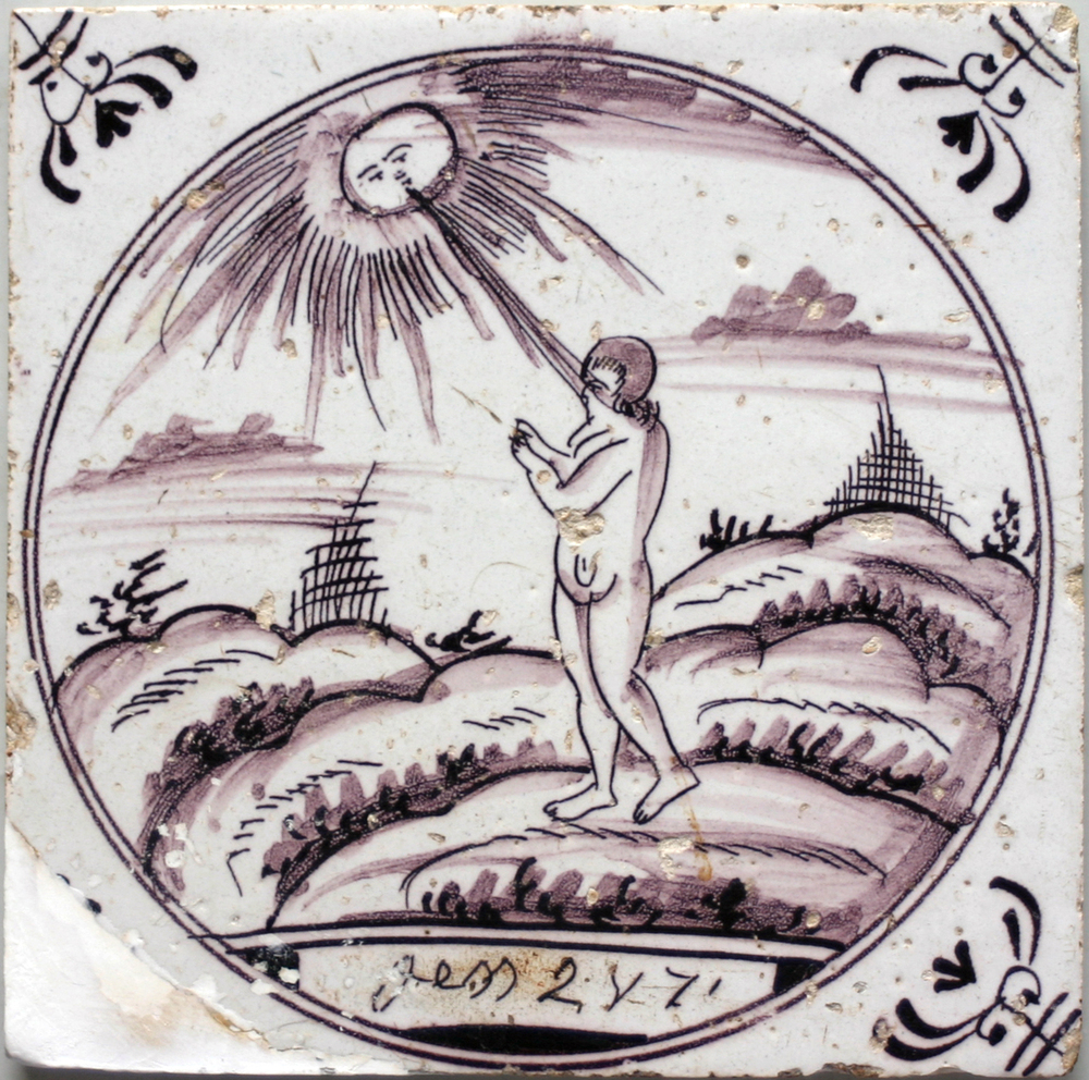 tegel van keramiek met tinglazuur, voorstellende: Ad...