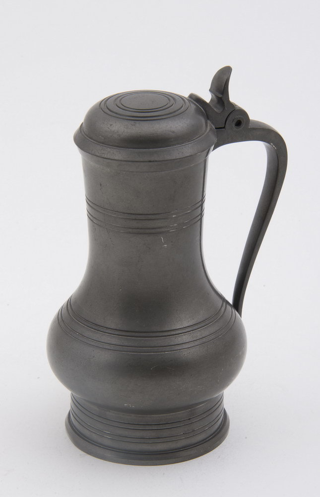 Schenkkan van oud tin, vervaardigd door Metaalwarenf...