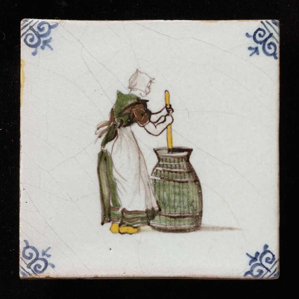 Tegel van keramiek, tinglazuur, voorstellende jaarge...