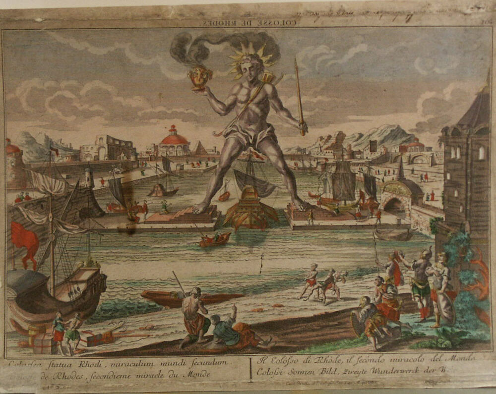 opticaprent, voorstellend De Colossus van Rhodos, he...