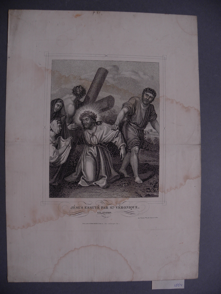 Litho voorstellende zesde statie uit de kruisiging v...