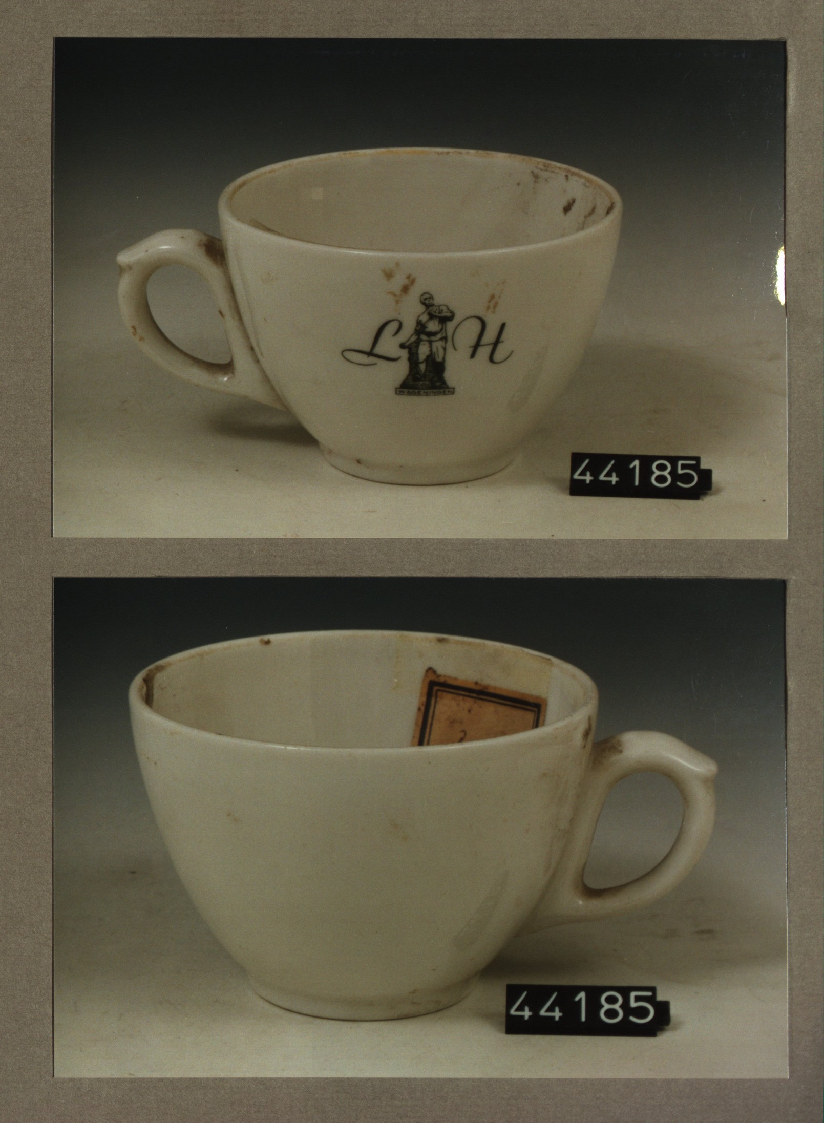 Kop met opschrift, model SMN met decor L.H.Wageninge...