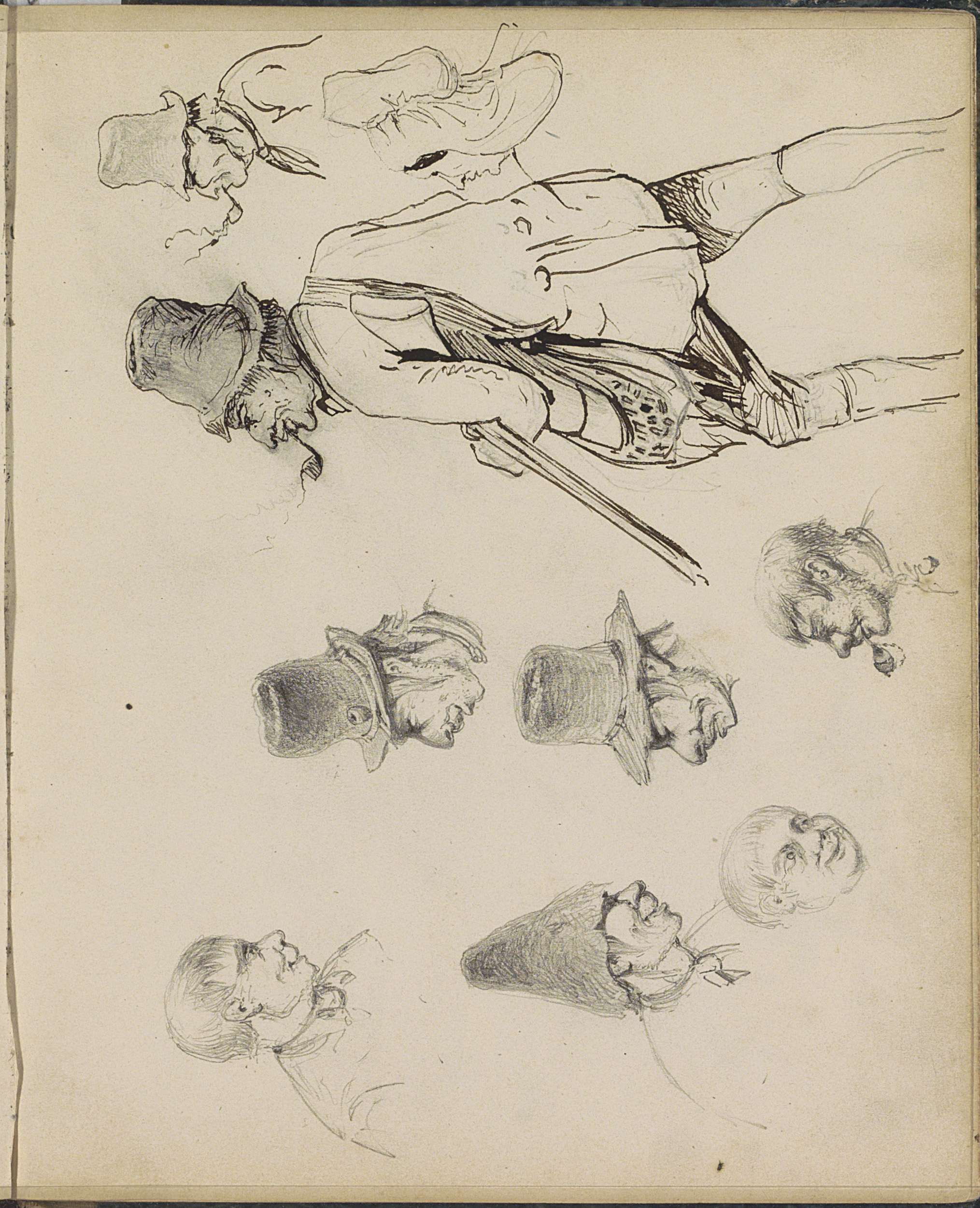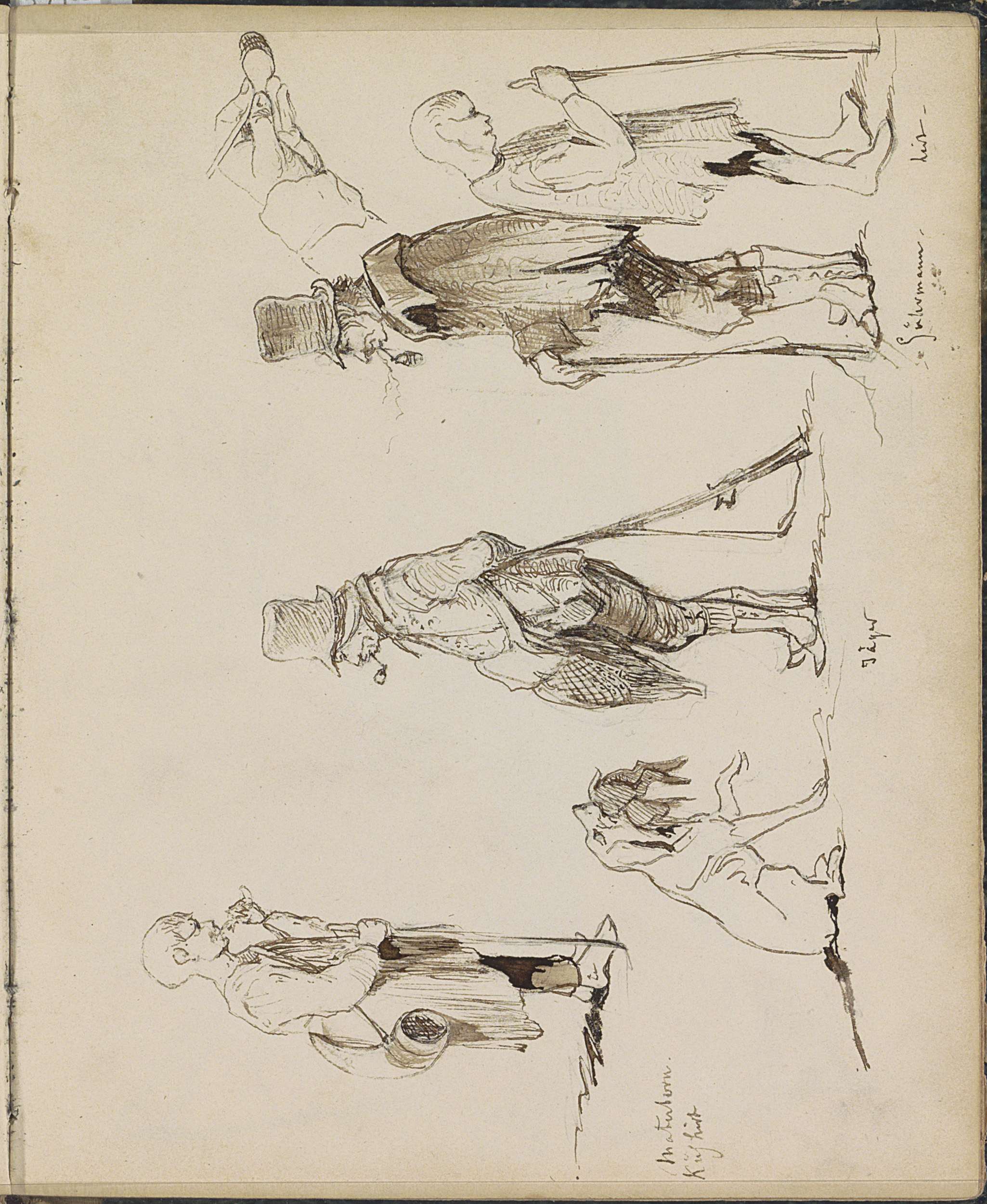 Studieblad, onder andere met pijprokende mannen en v...