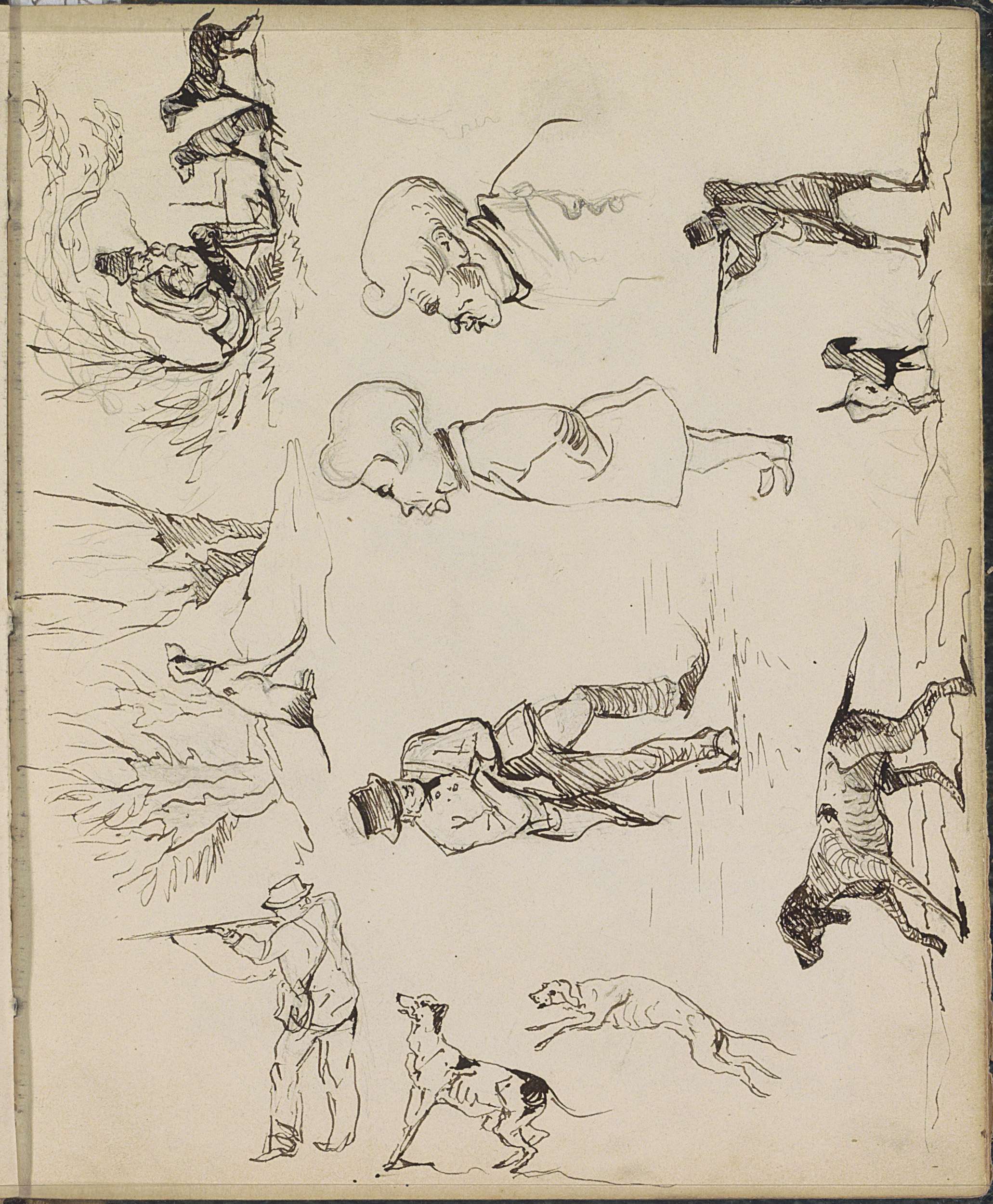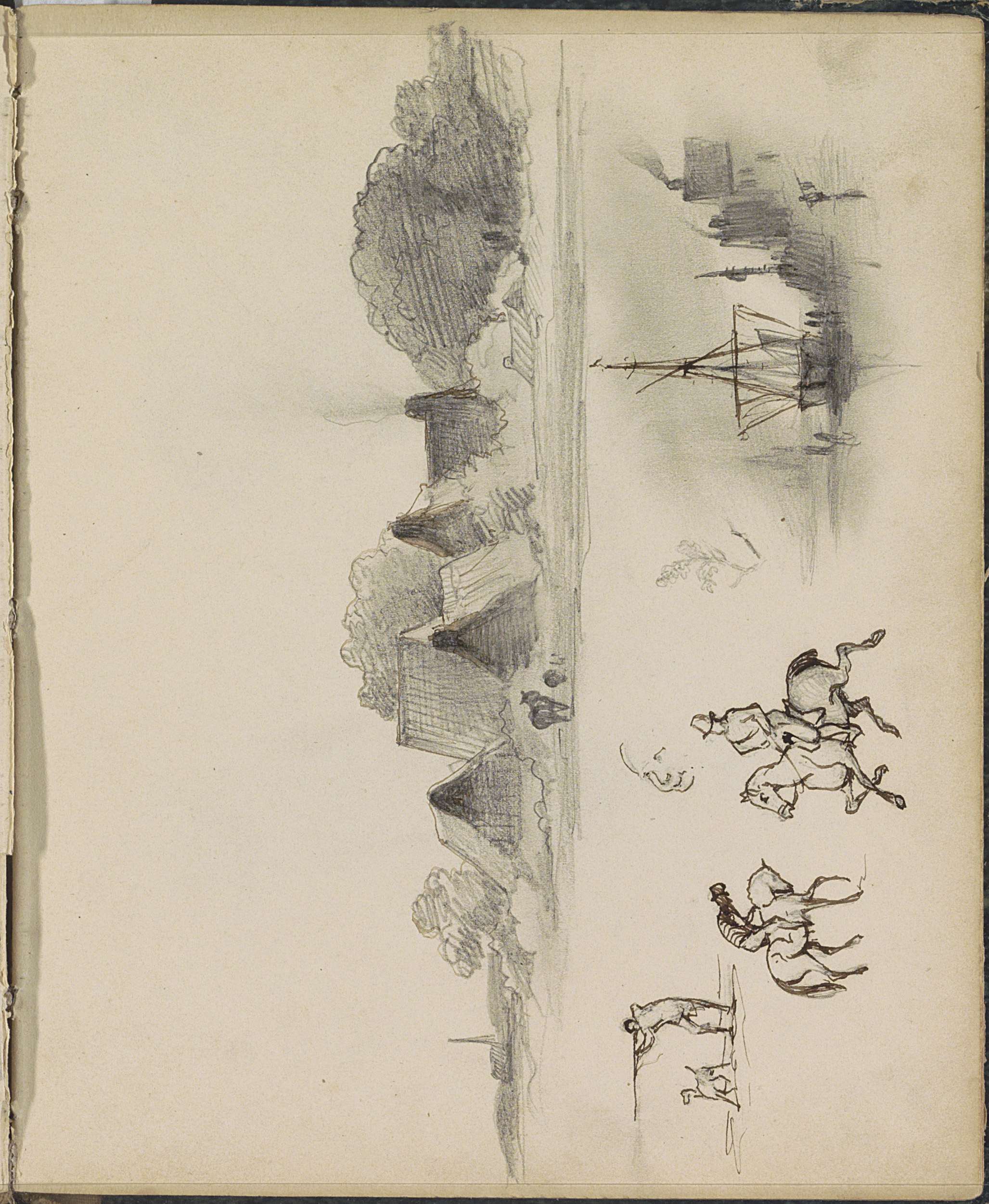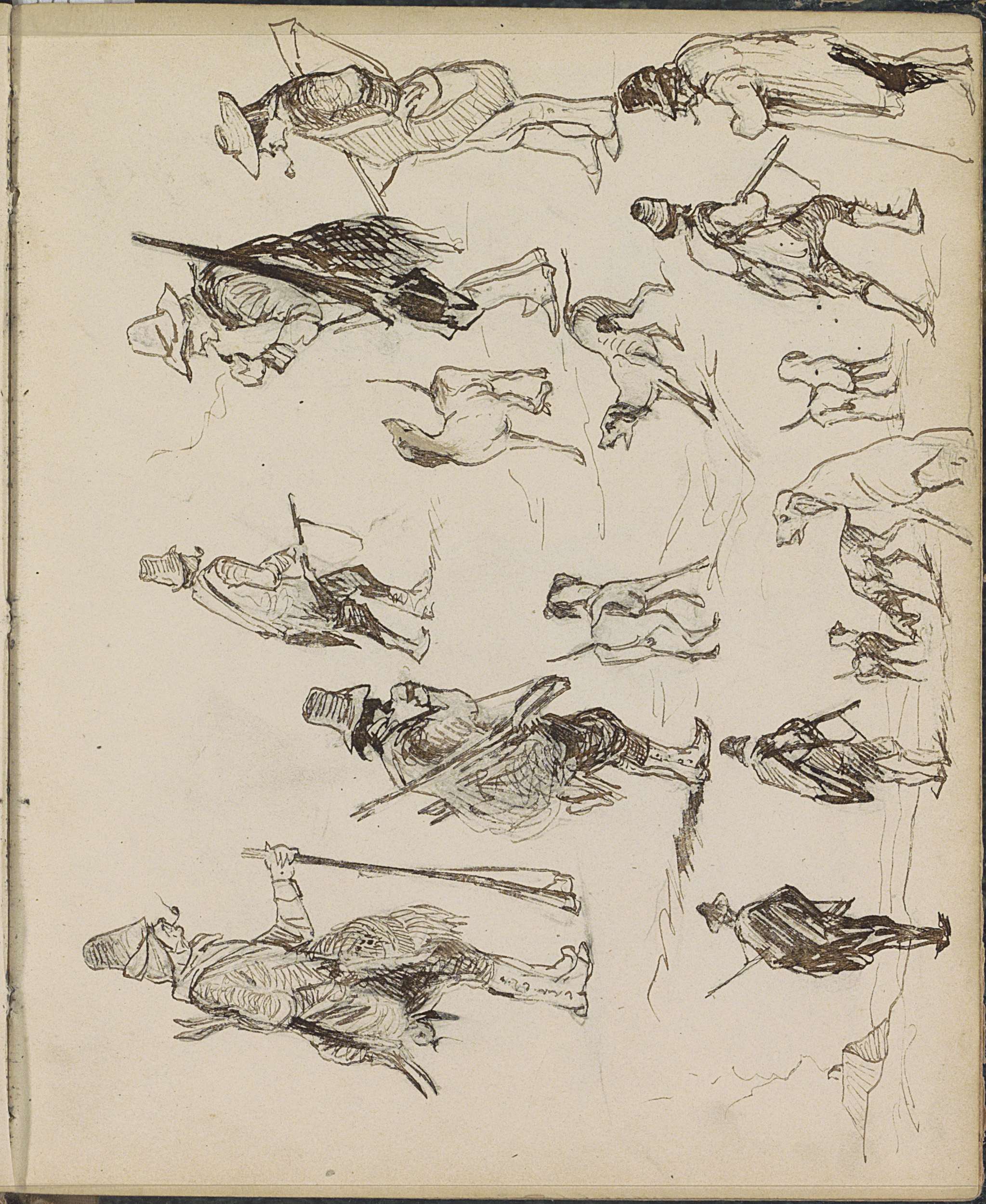 Studieblad, onder andere met ruiters, een jager en a...