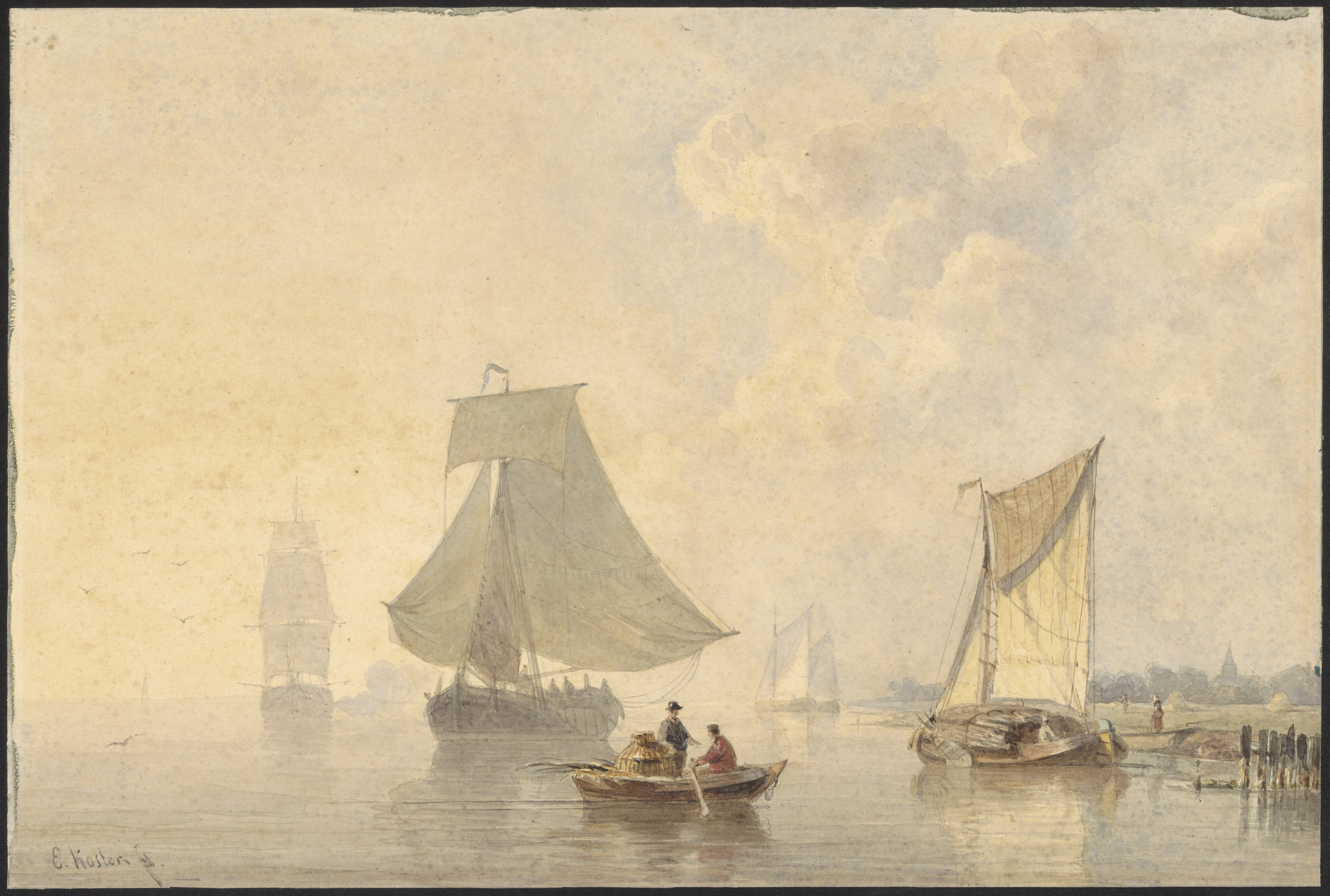 Riviergezicht met schepen
