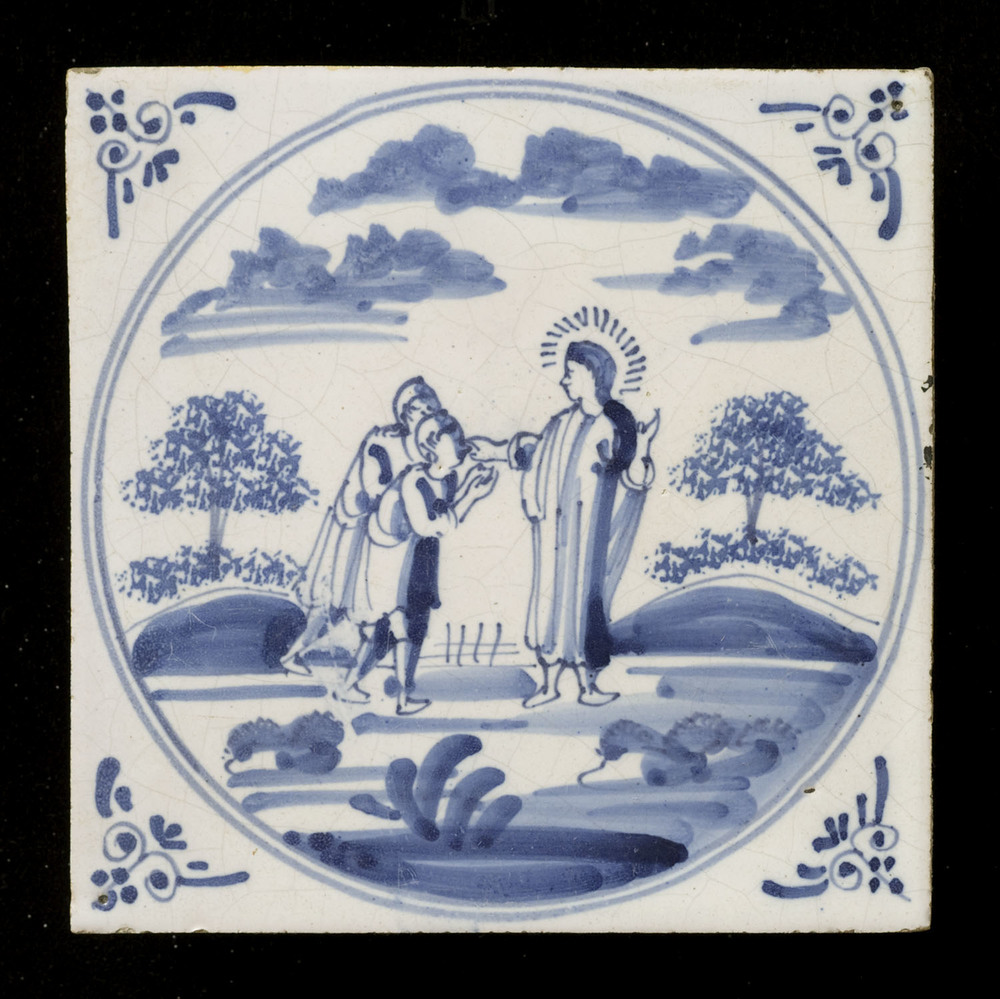 Tegel van aardewerk met tinglazuur voorstellende een...