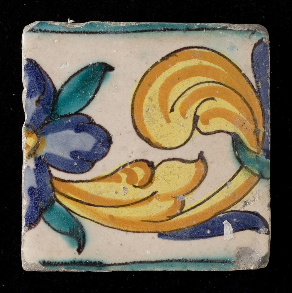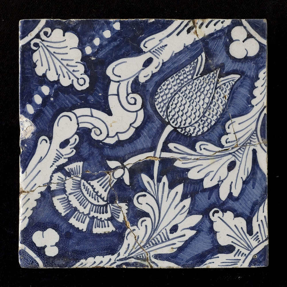 Tegel van keramiek met tinglazuur, voorstellende: or...