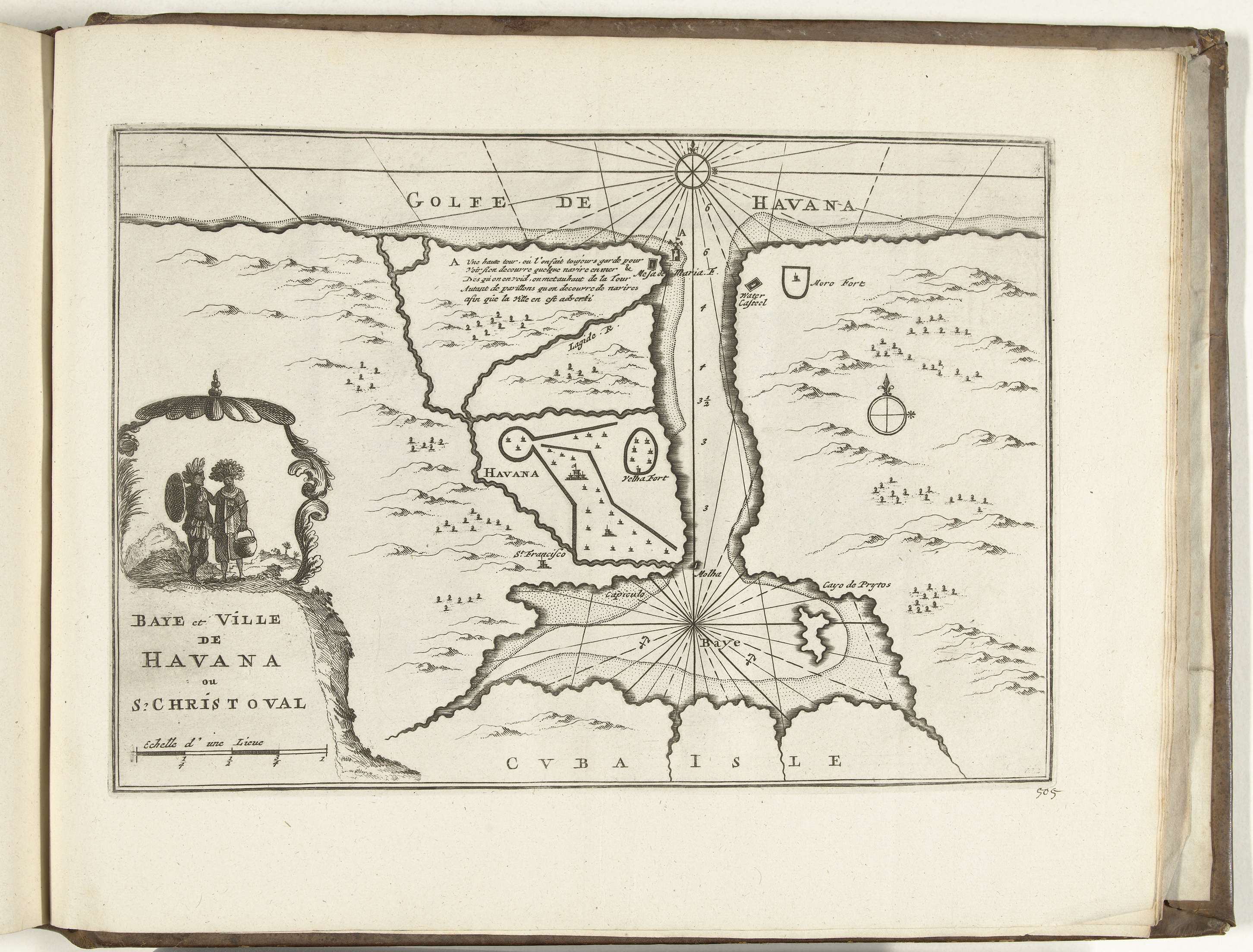 Kaart van Havana en de baai op Cuba, 1726