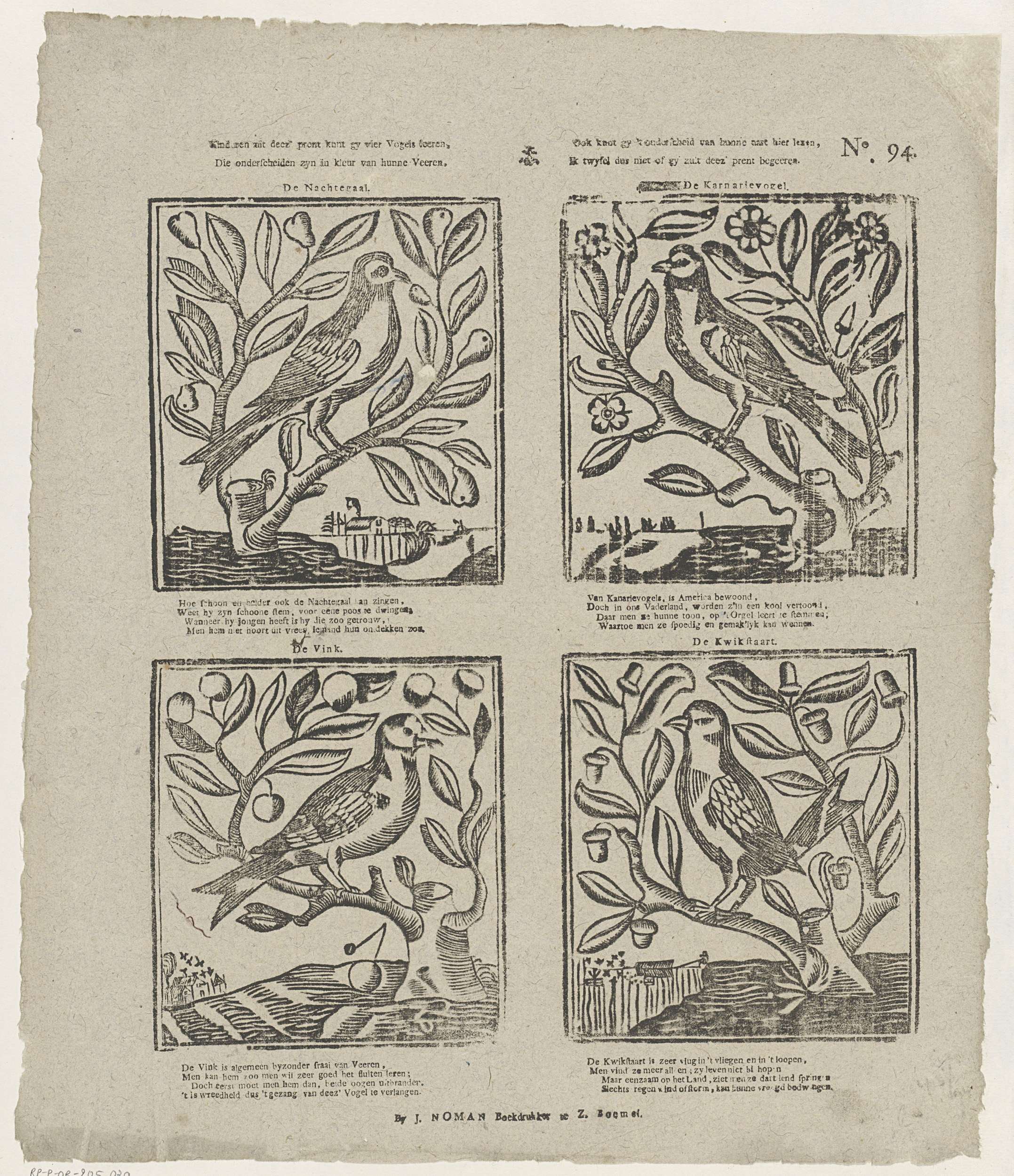 Kinderen uit deez' prent kont gy vier vogels leeren,...
