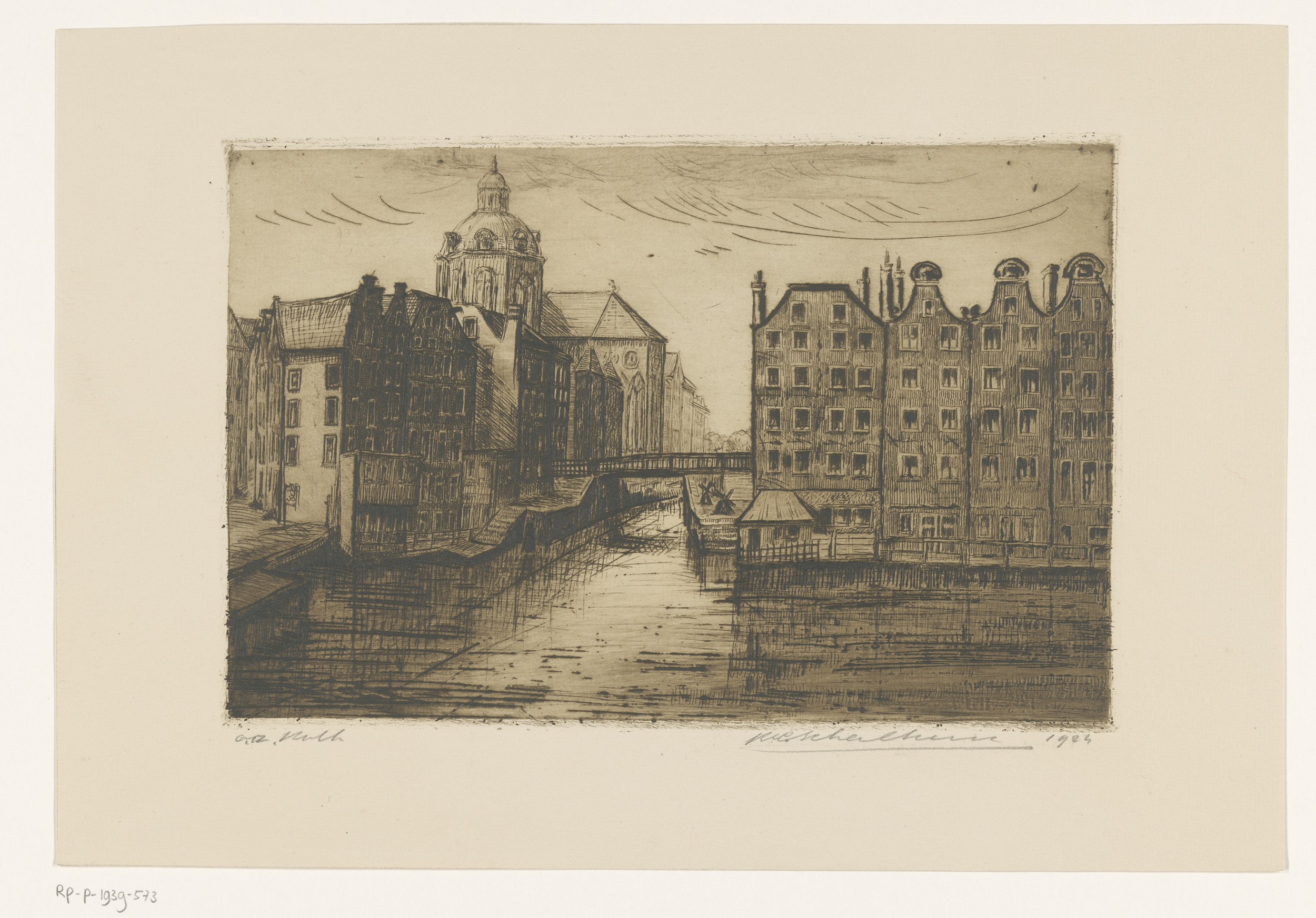 Gezicht op de Oudezijds Kolk en de Sint Nicolaaskerk...