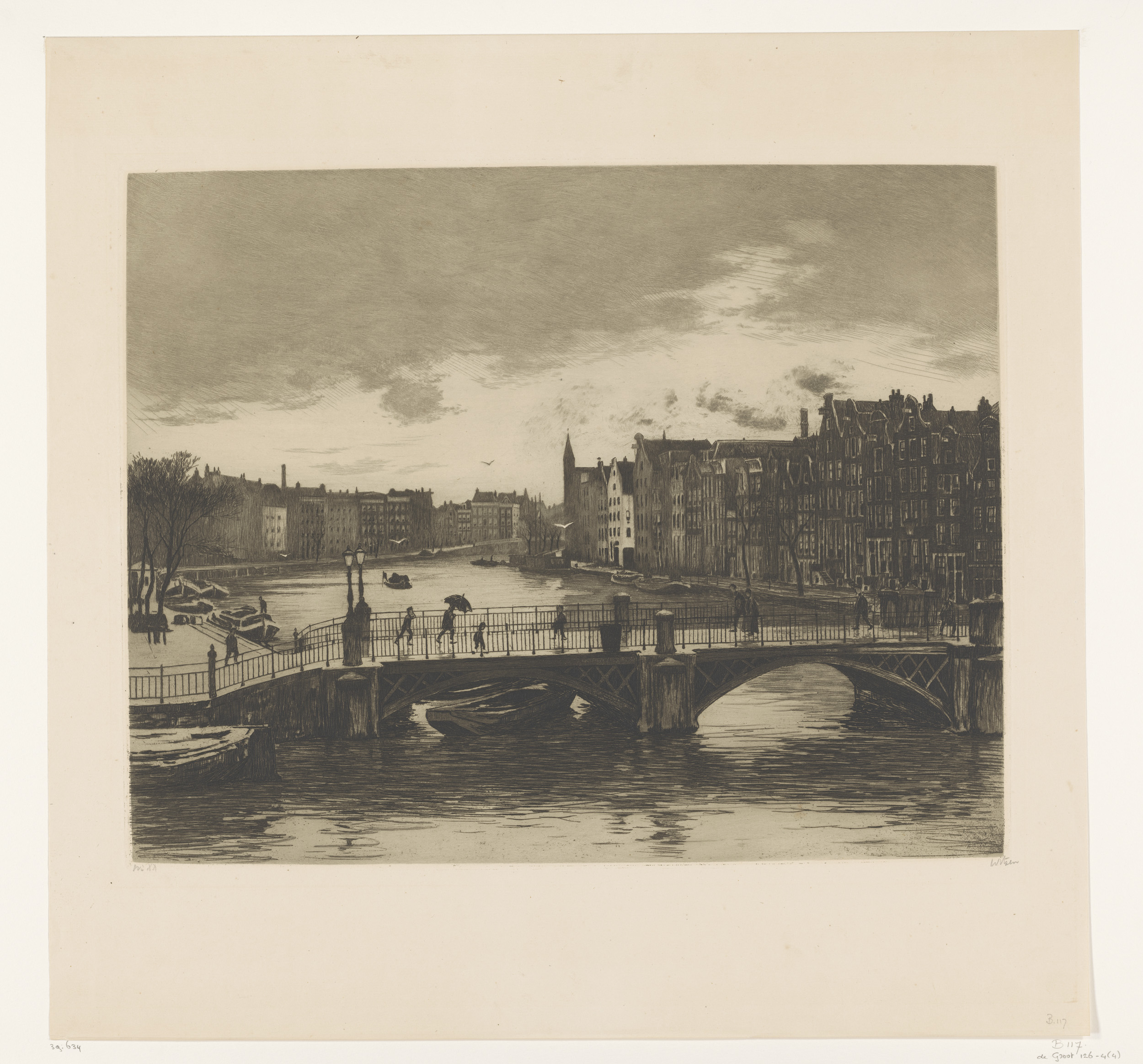 Stadsgezicht met ophaalbrug en Marekerk in Leiden