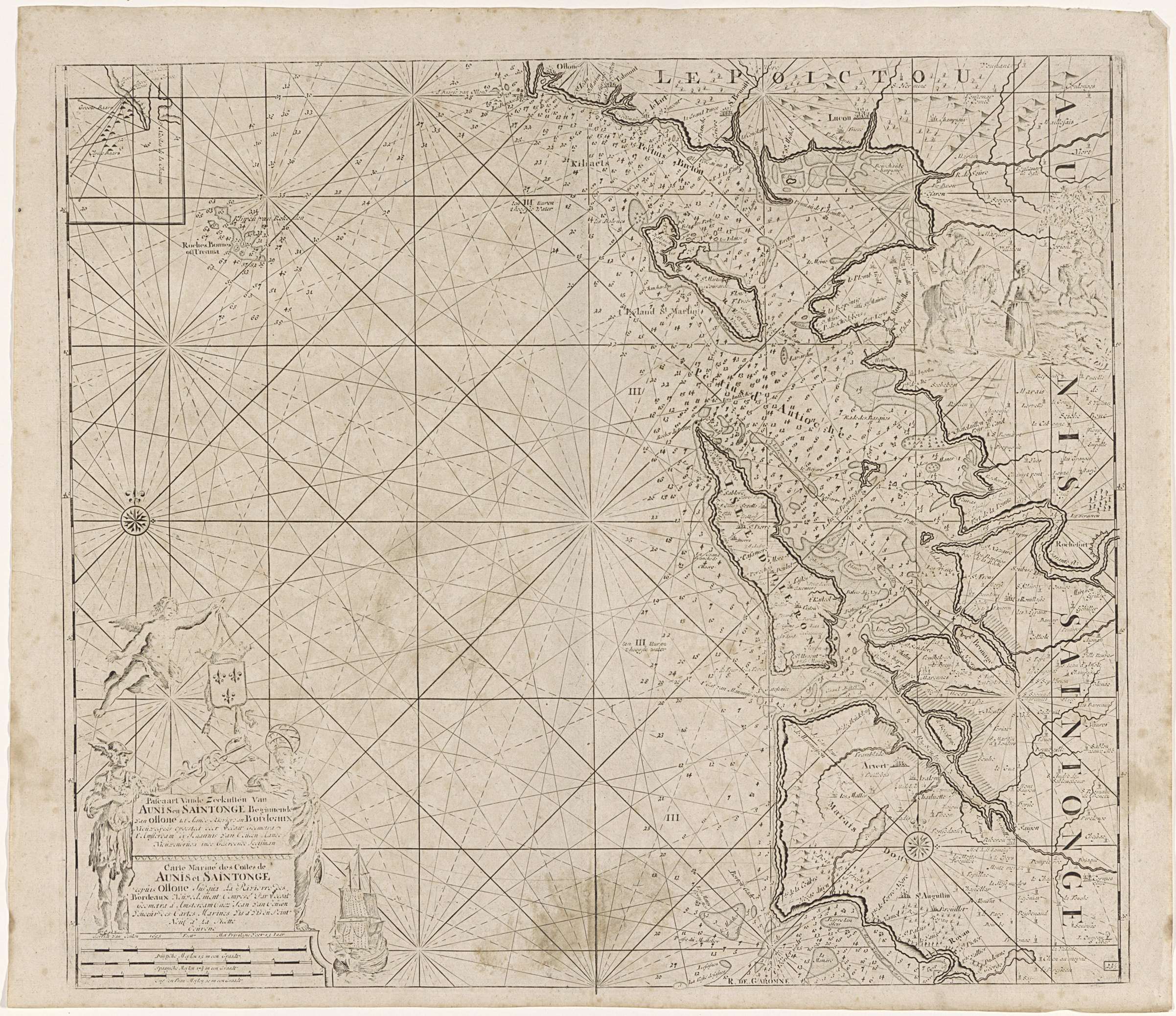 Paskaart van de rivier de Gironde tot aan Bordeaux