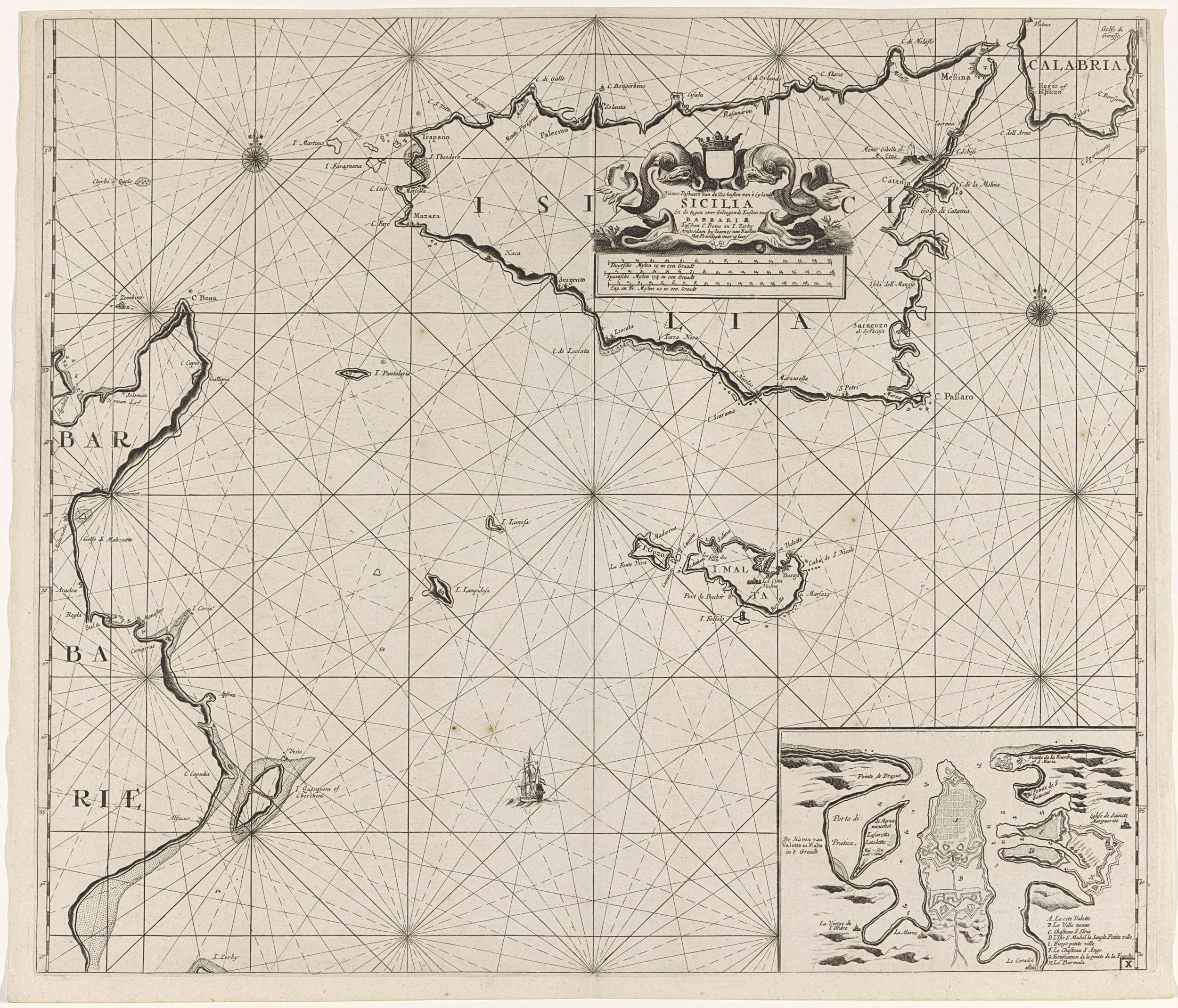 Paskaart van een gedeelte van de Middellandse Zee me...