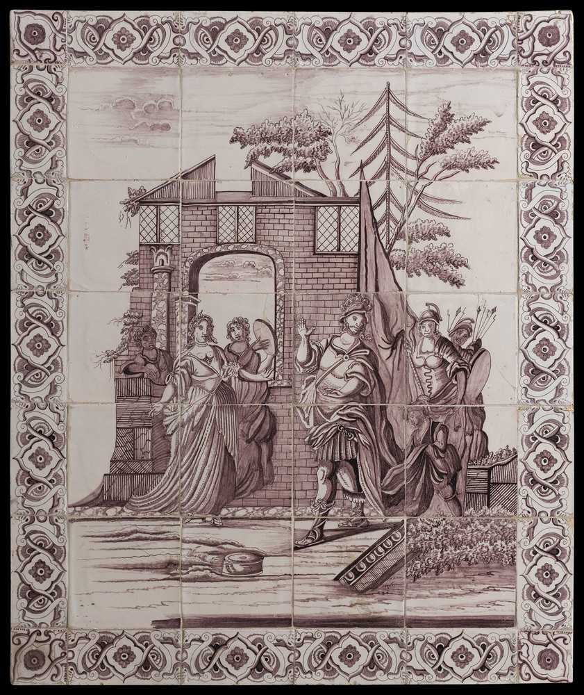 Tegeltableau van keramiek met tinglazuur, voorstelle...