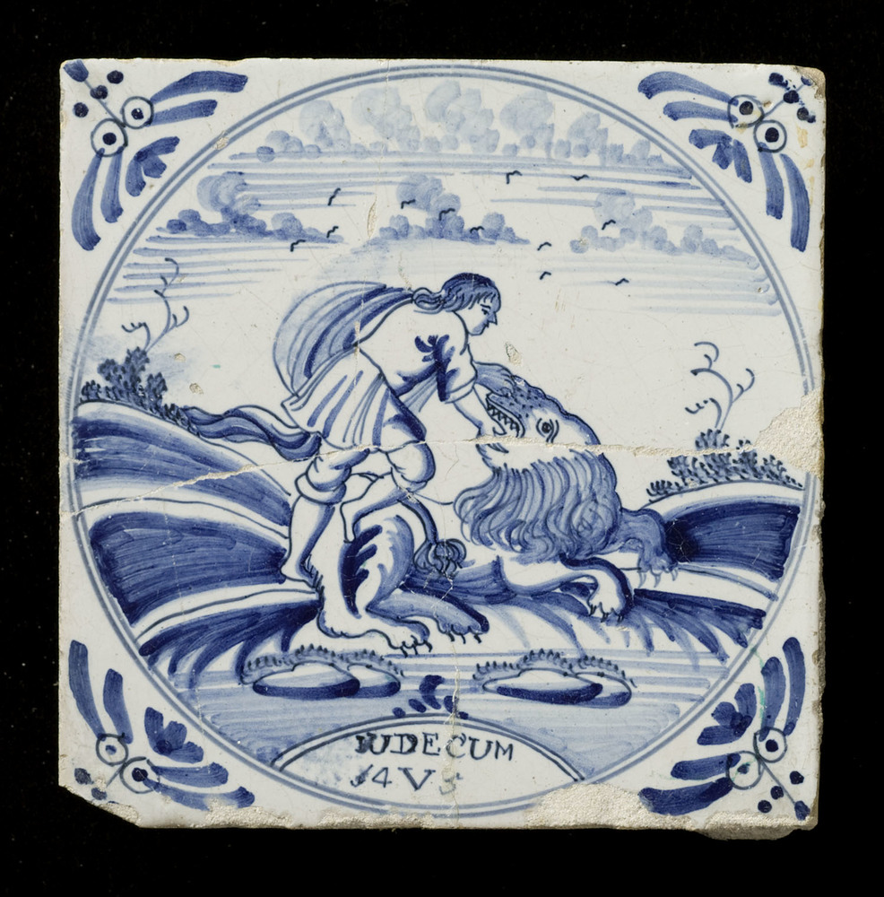 Tegel van keramiek, tinglazuur, voorstellende een la...