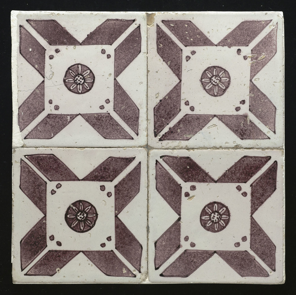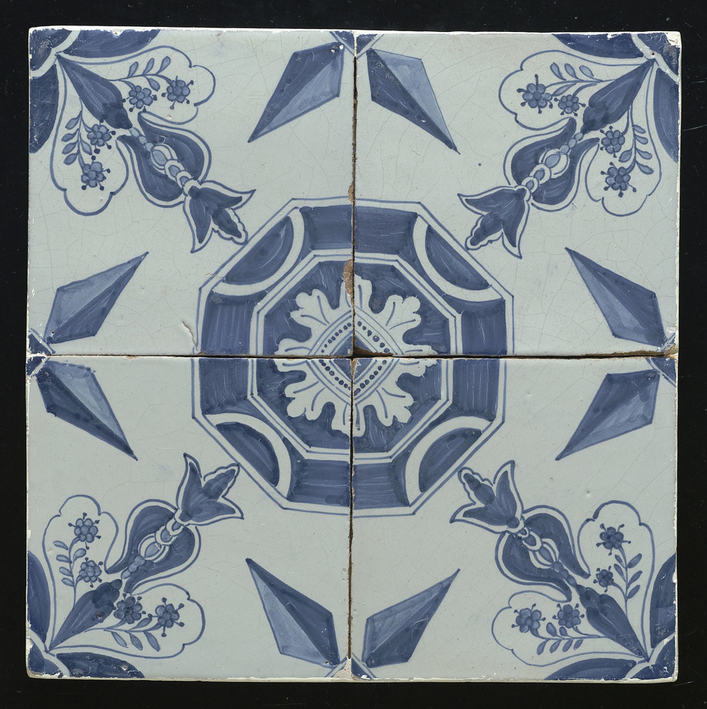 Tegelveld bestaande uit vier tegels van keramiek met...