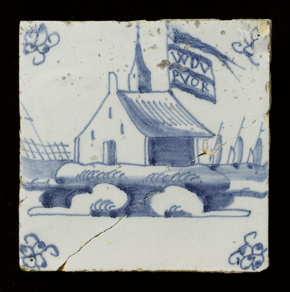 tegel van aardewerk met tinglazuur, voorstellende: o...