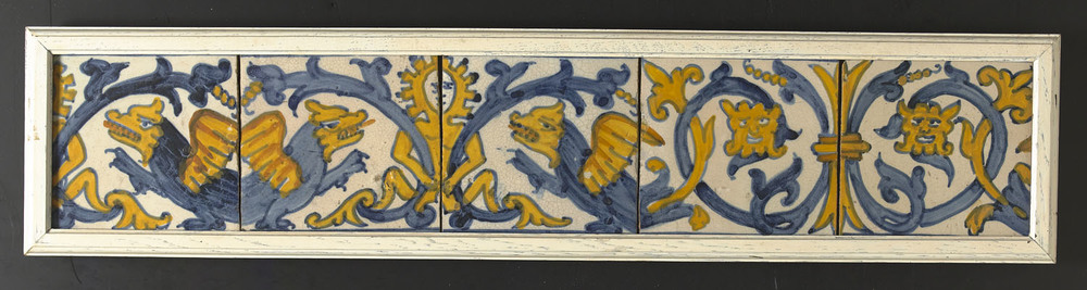 Tegeltableau met randtegels van aardewerk met tingla...