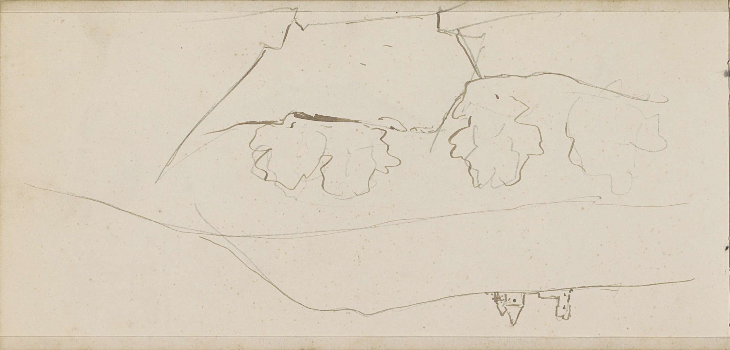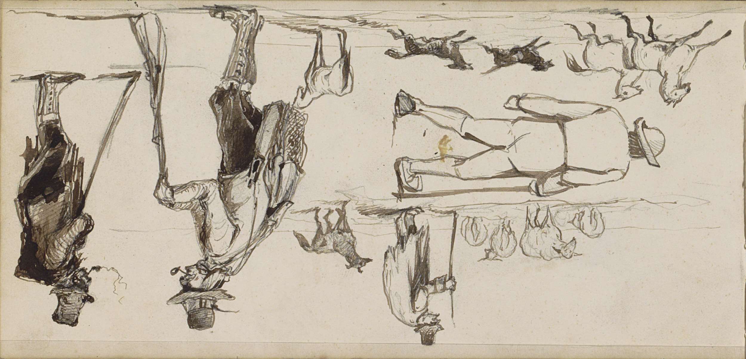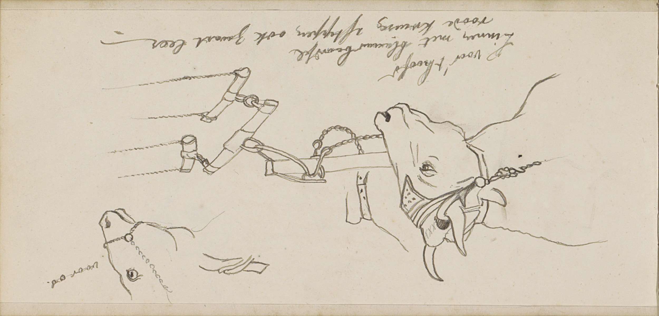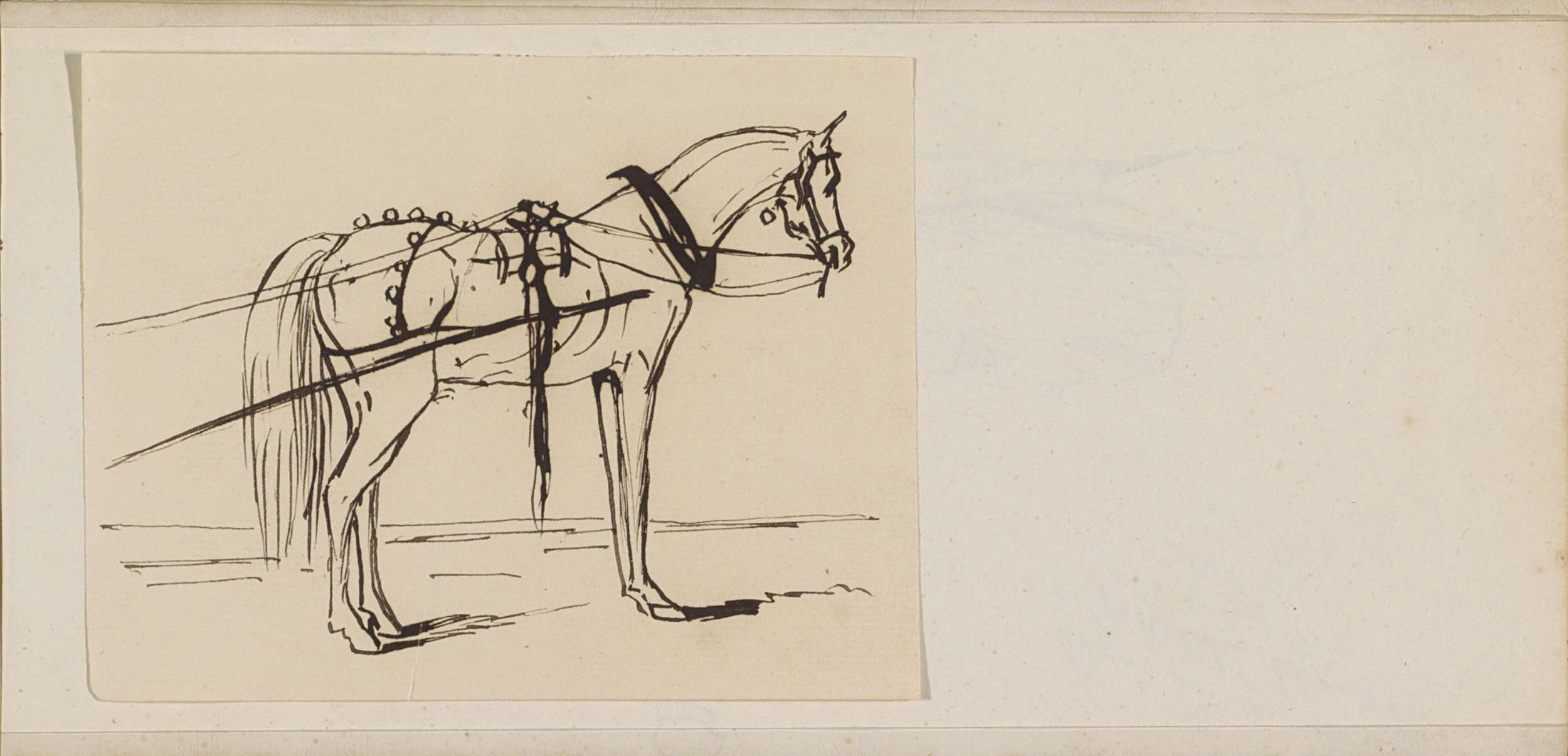 Studieblad, onder andere met een ploegend paard, her...