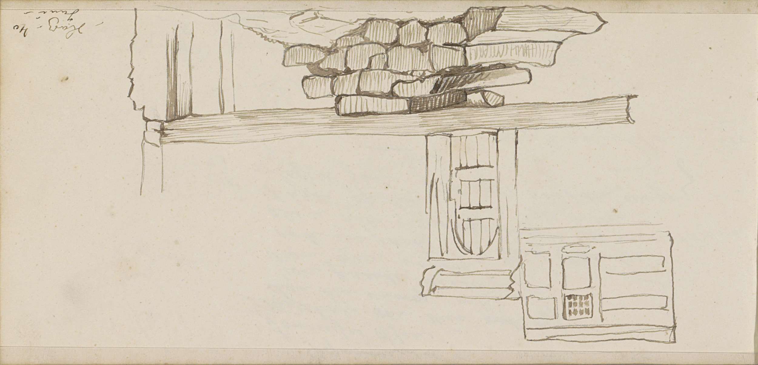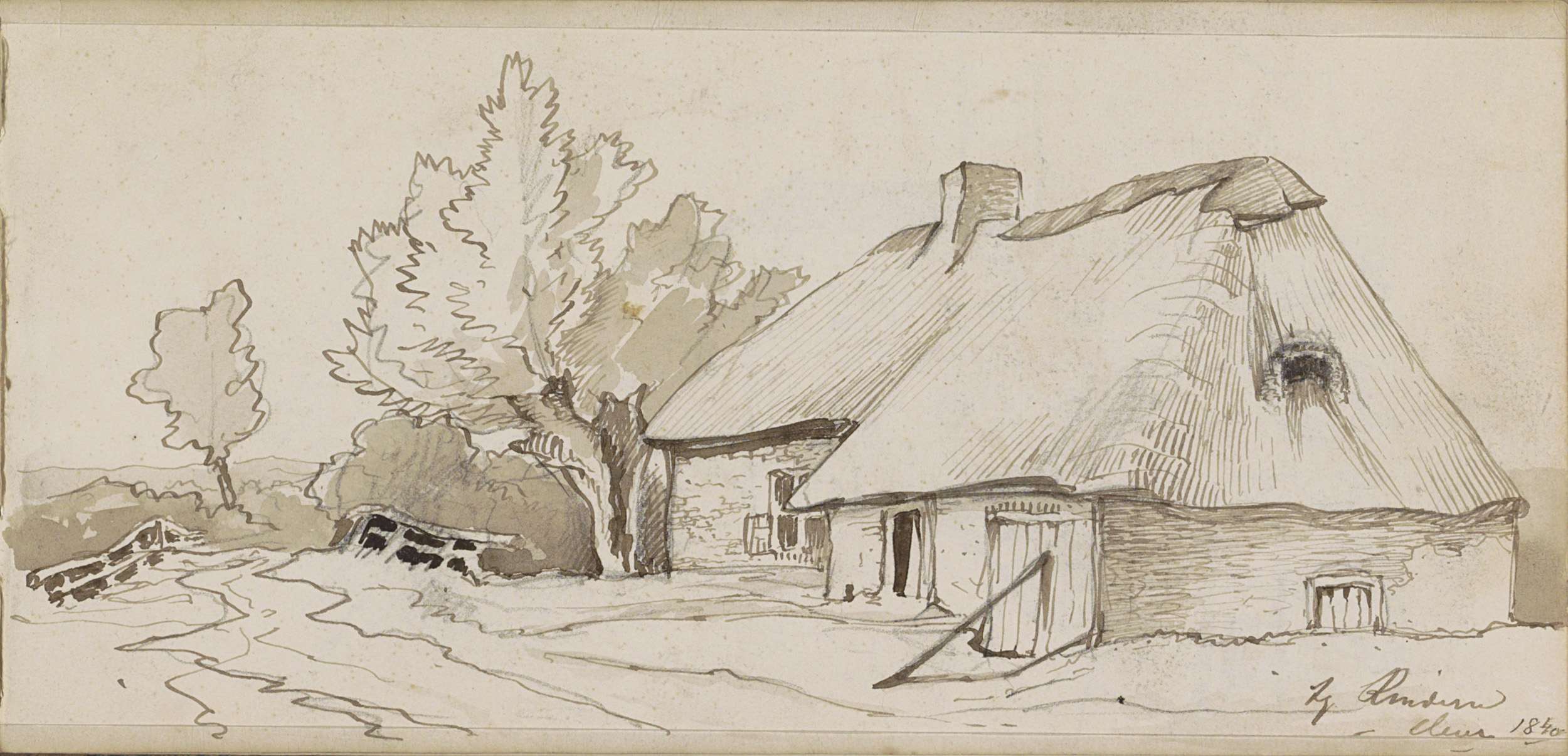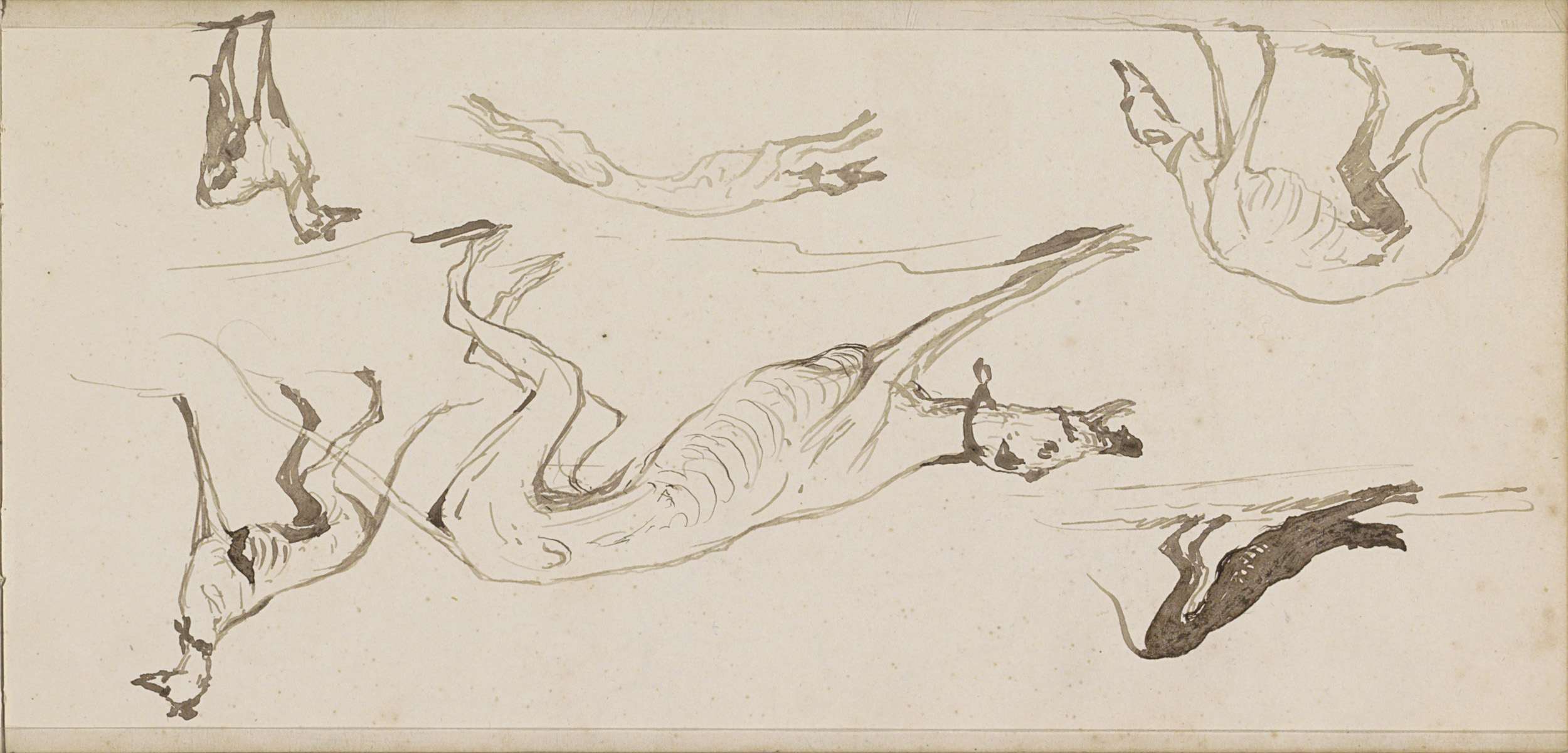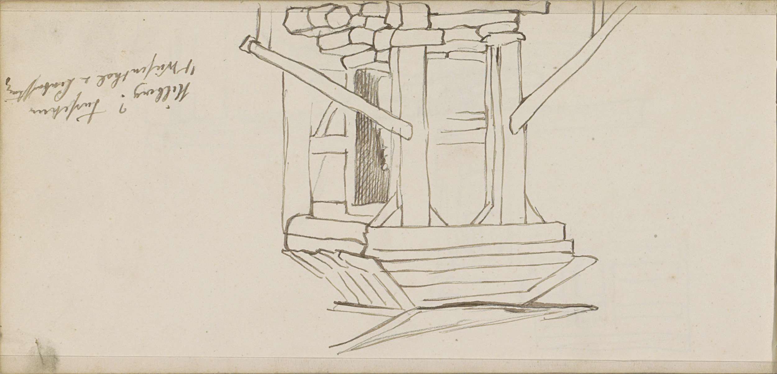 Studieblad, onder andere met een ploegend paard, her...