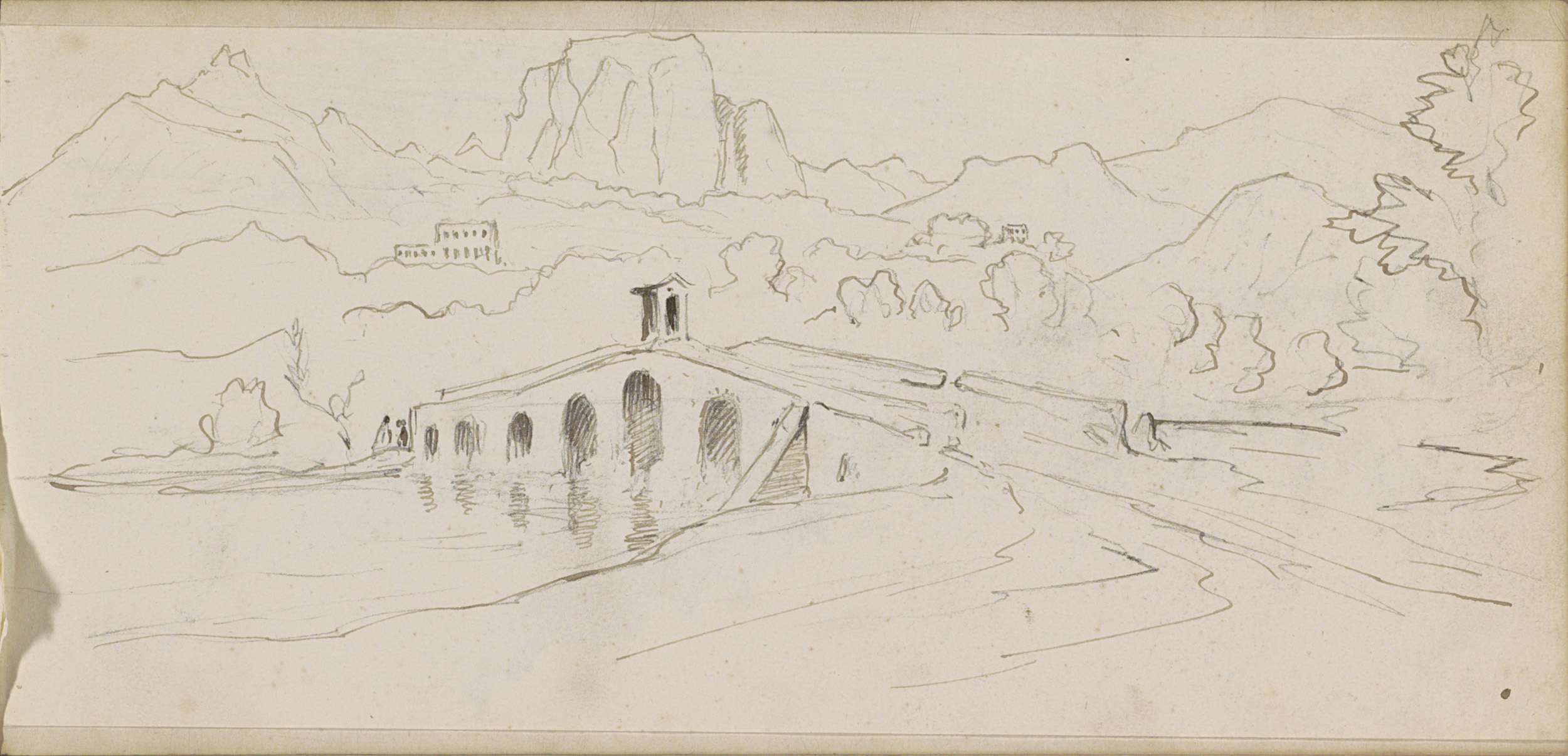 Berglandschap met een brug over een rivier