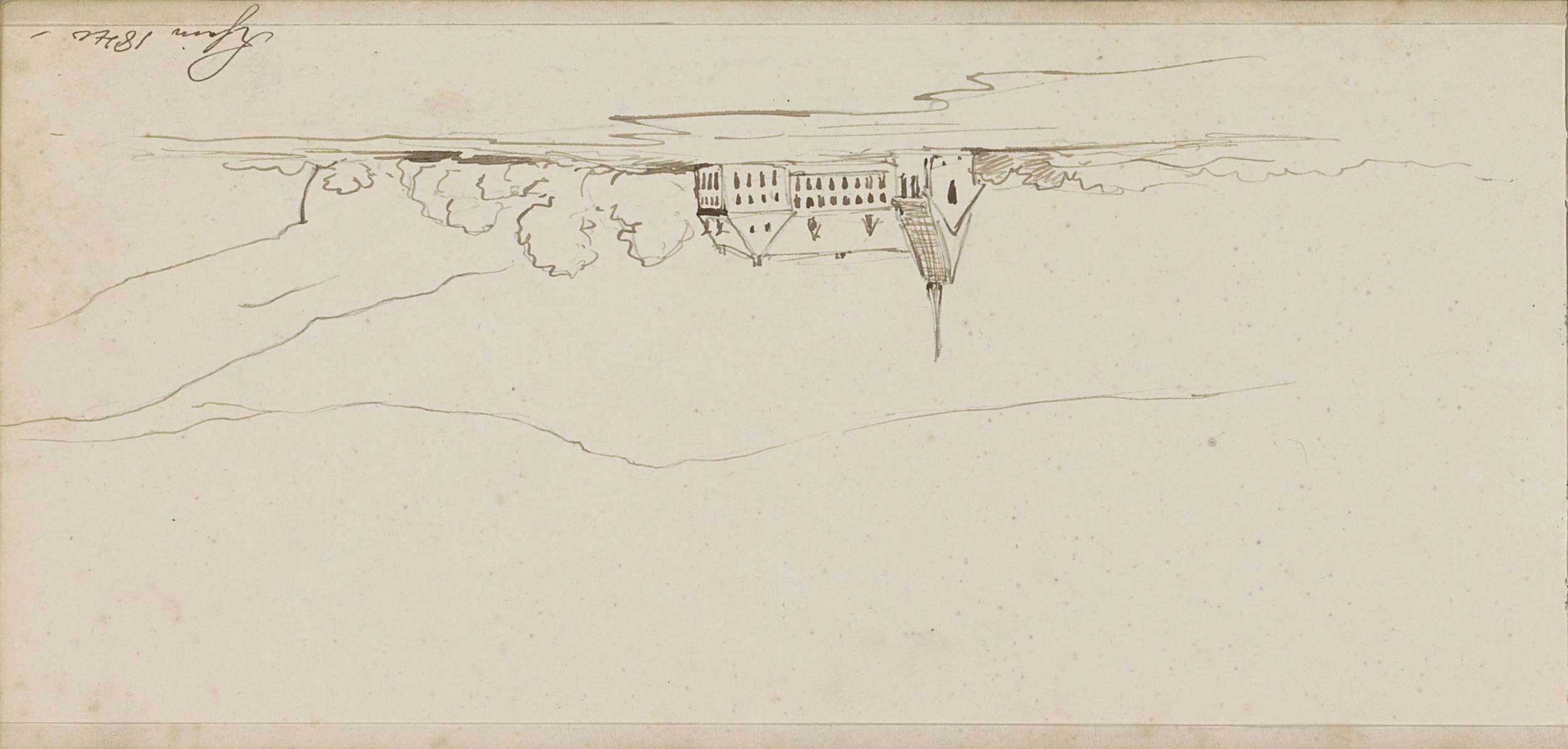 Landschap met bomen en een kasteel