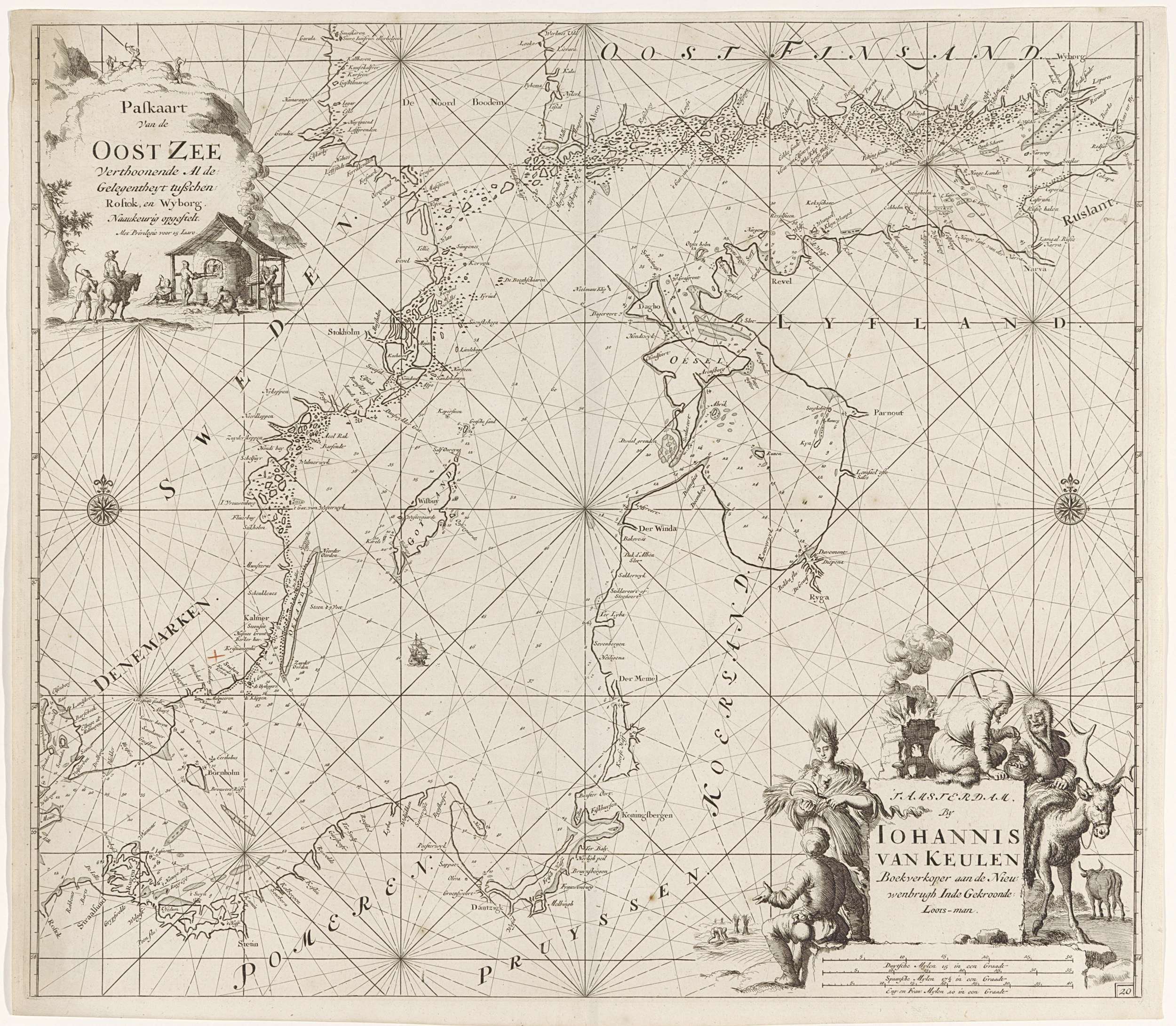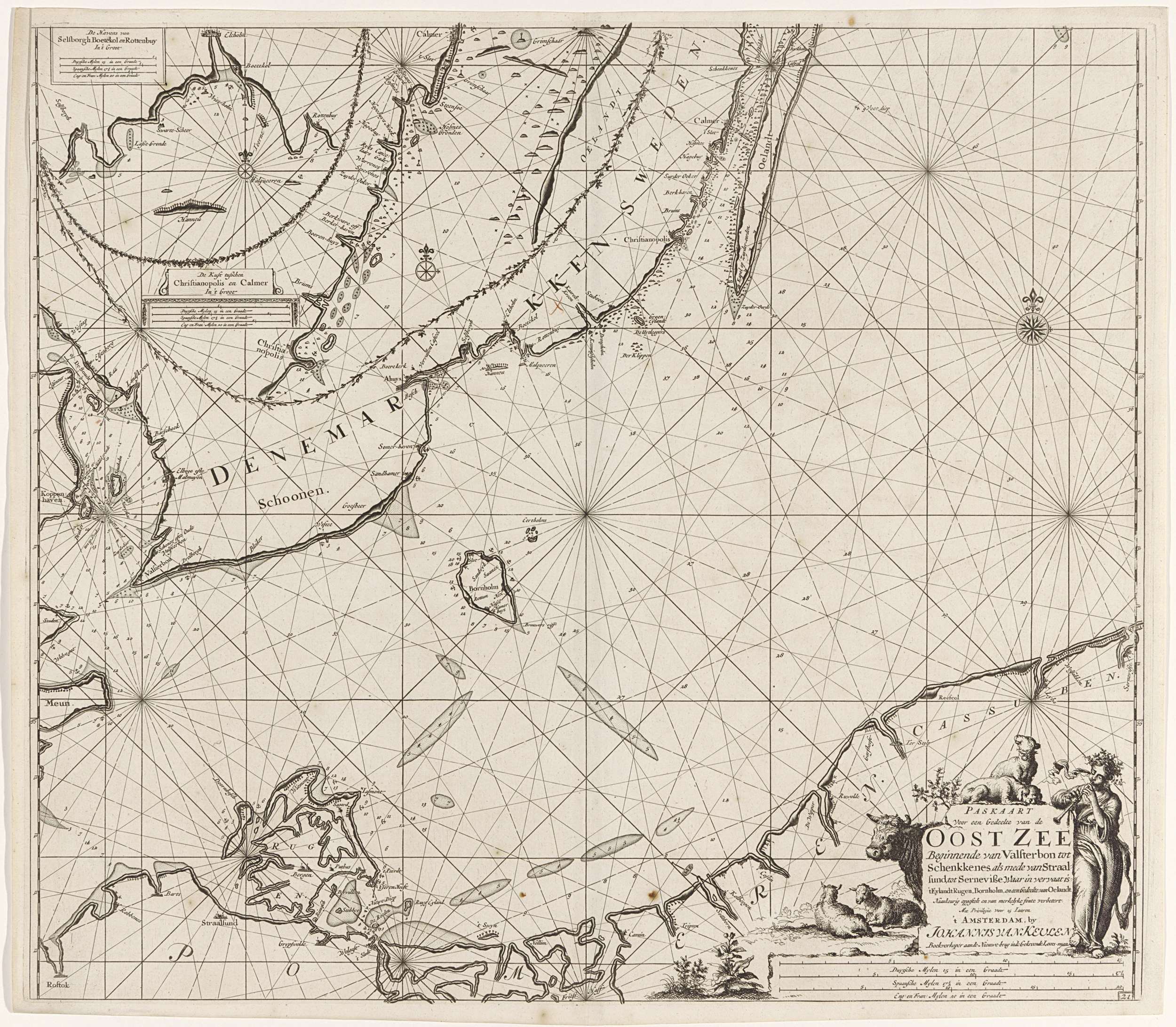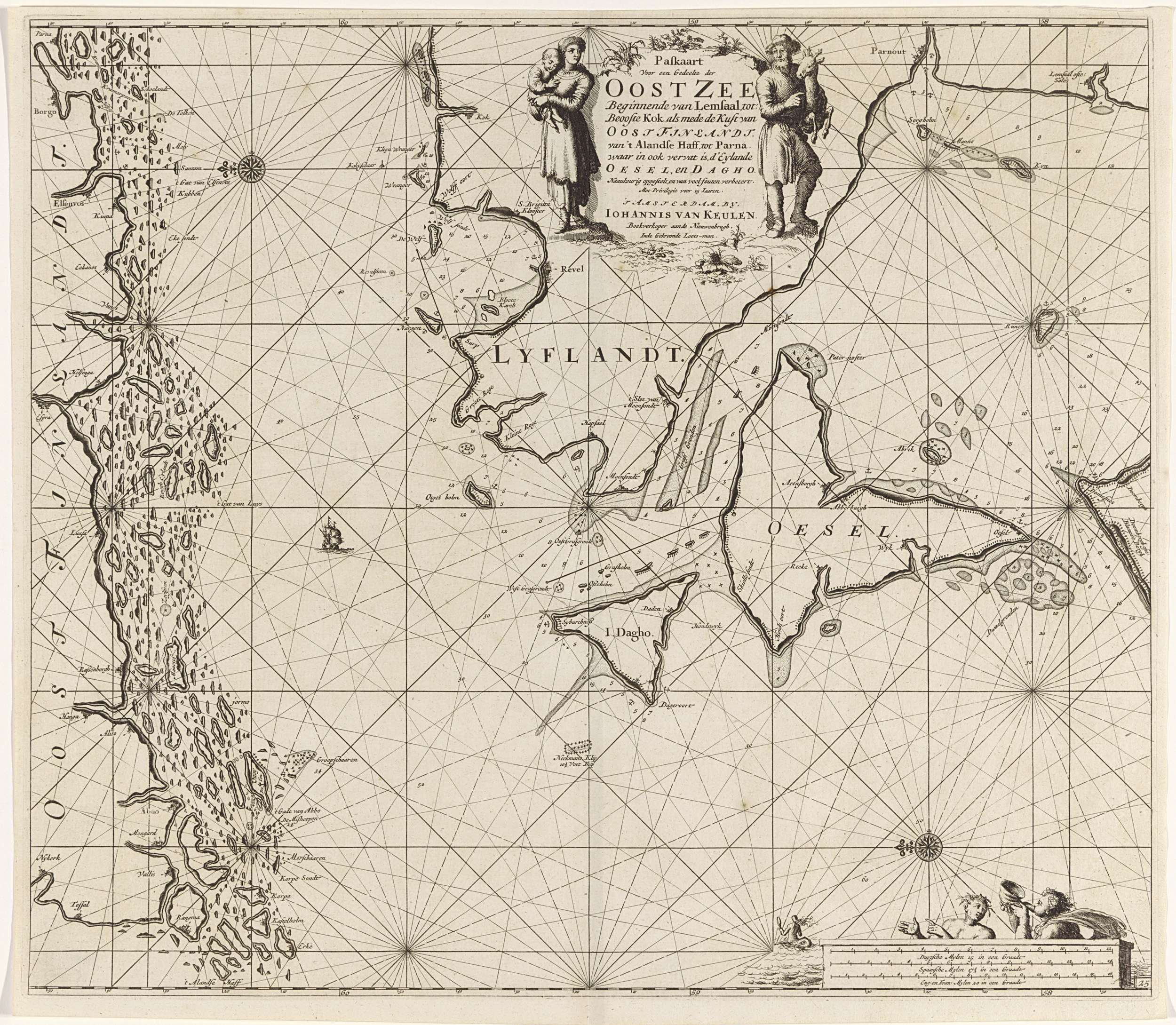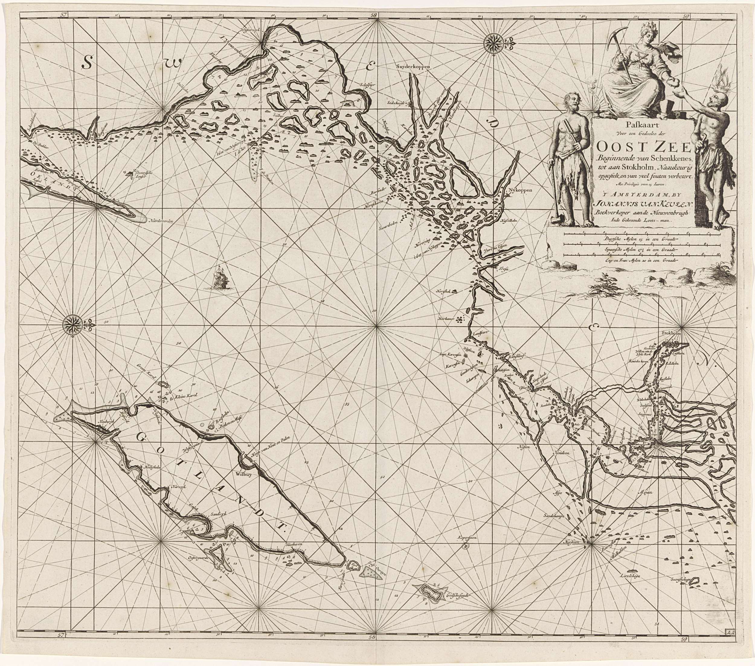 Paskaart van een gedeelte van de Oostzee met de kust...