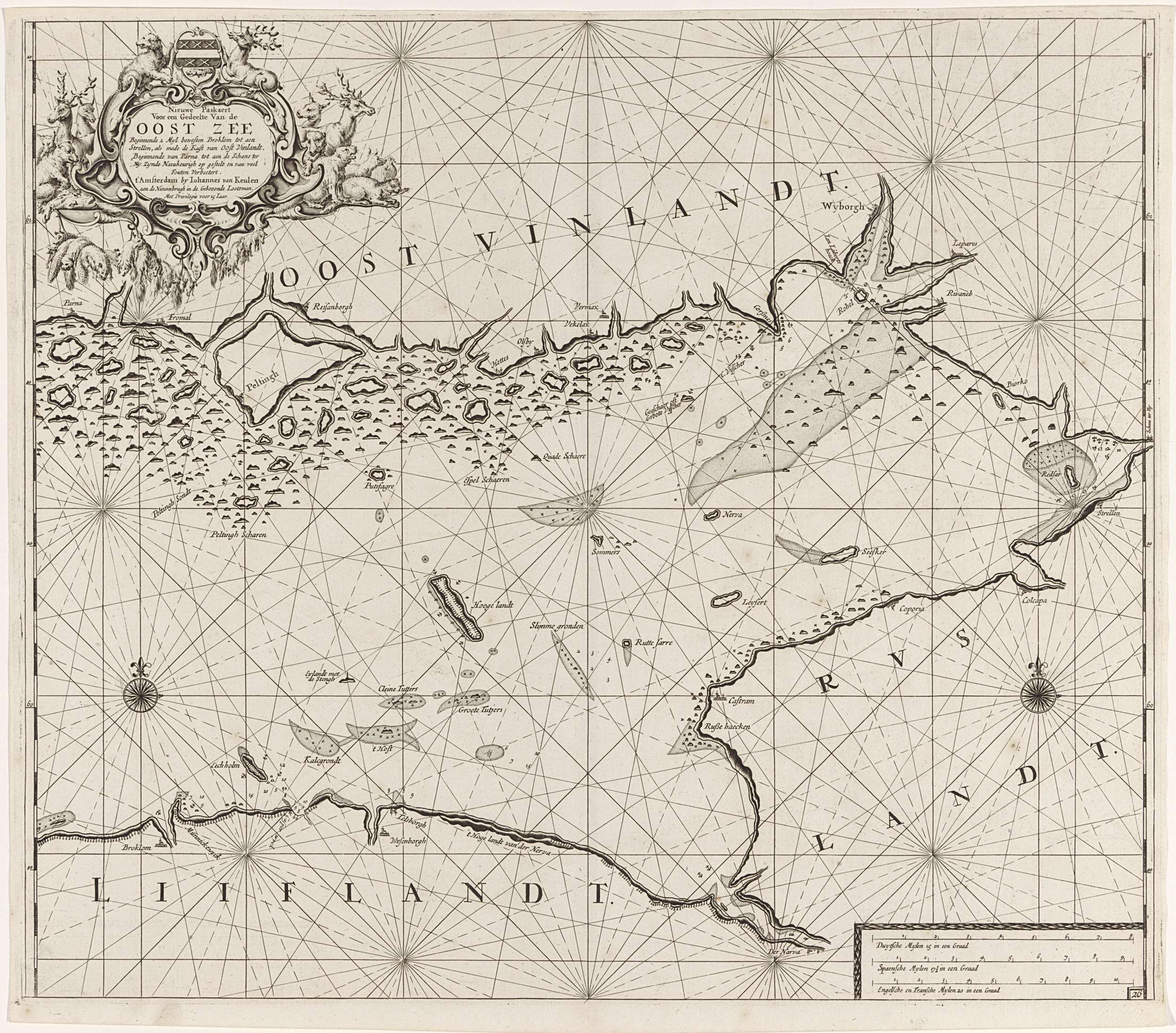 Paskaart van de Oostzee vanaf Rostock tot Vyborg