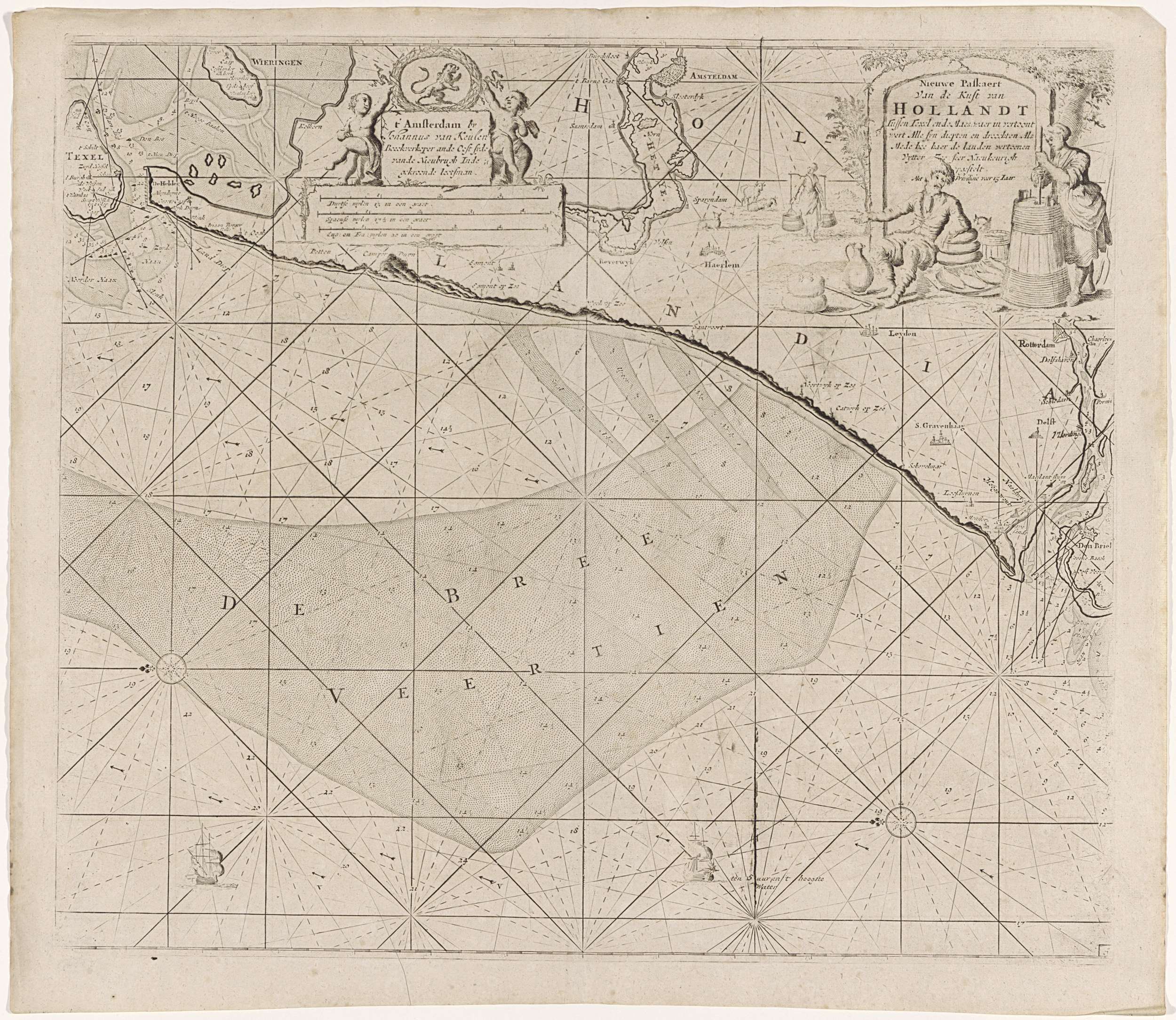 Paskaart van het zuidelijk deel van de Noordzee en e...