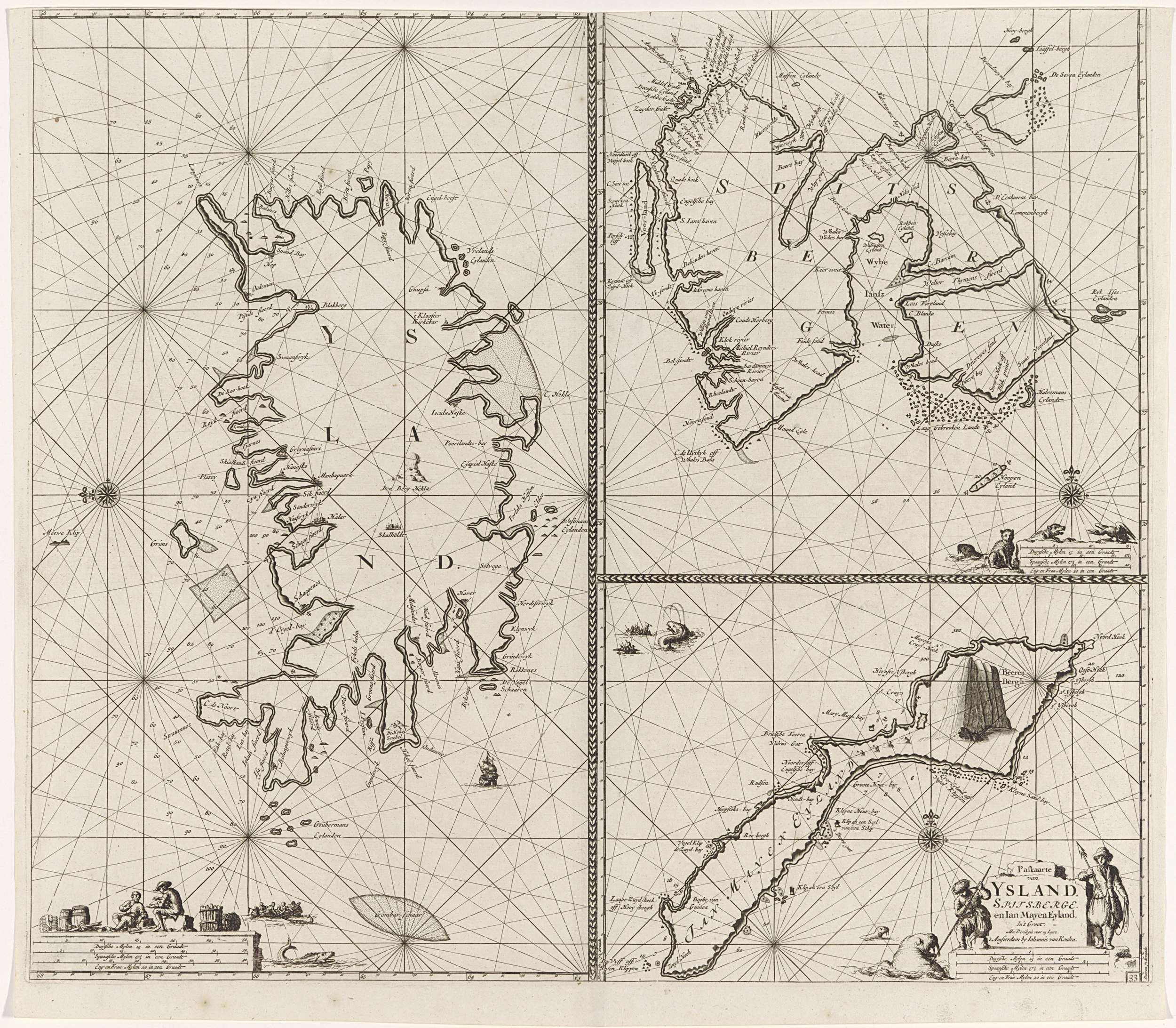 Driedelige paskaart van IJsland, Jan Mayen eiland en...