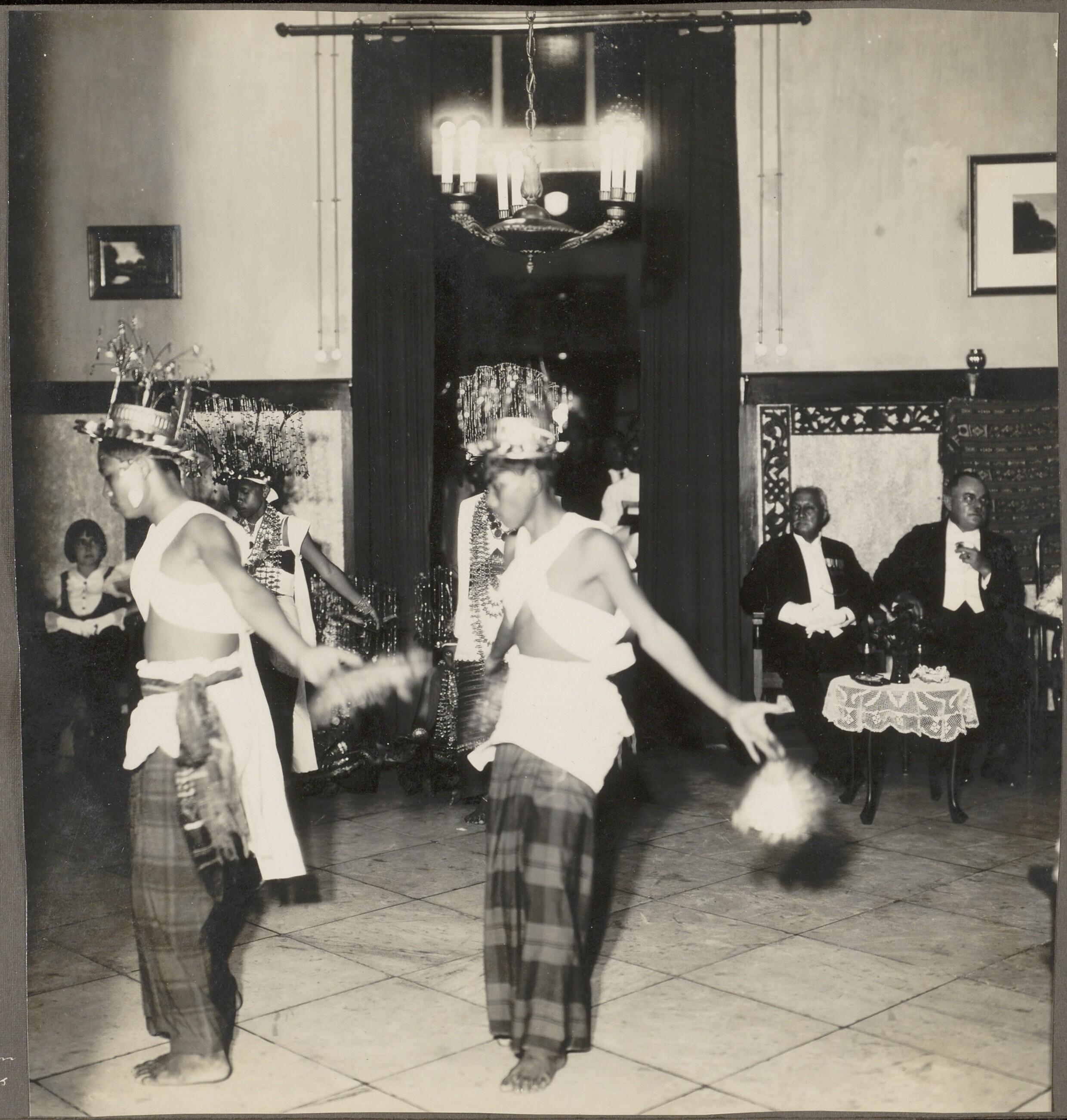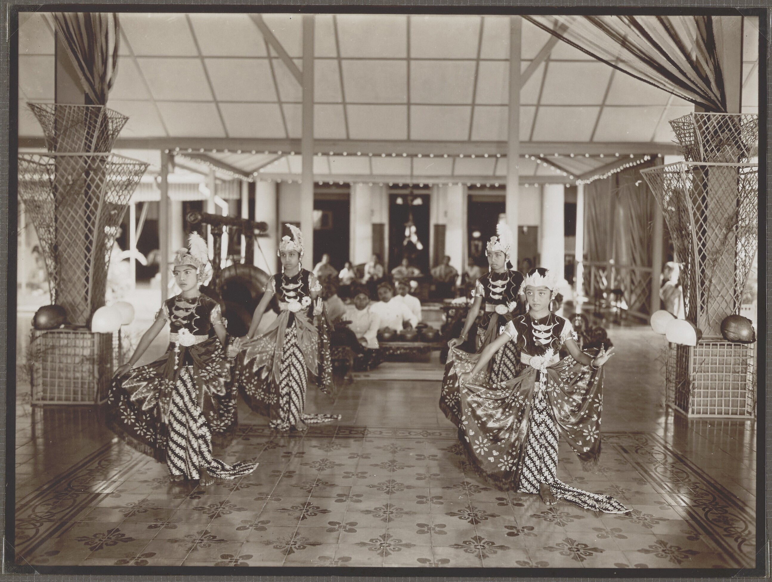 Dansers tijdens bezoek van de Soesoehoenan van Solo ...