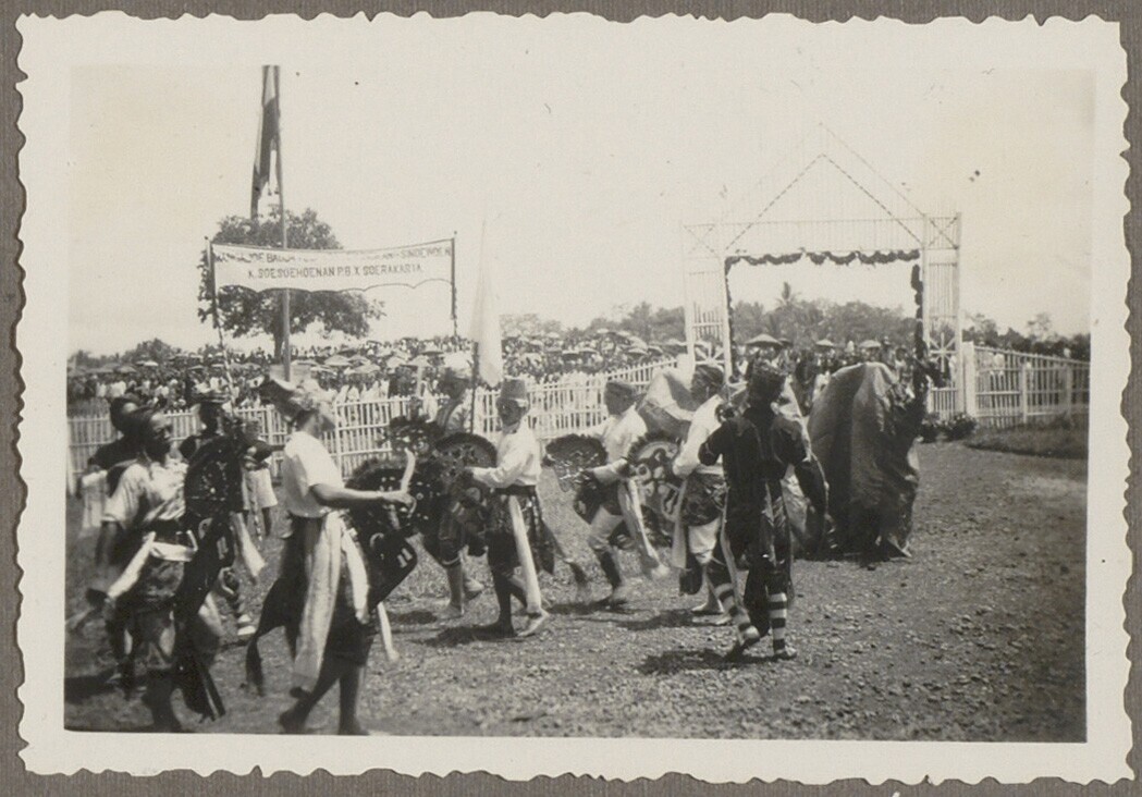 Javaanse krijgsdans bij het bezoek van Soesoehoenan ...
