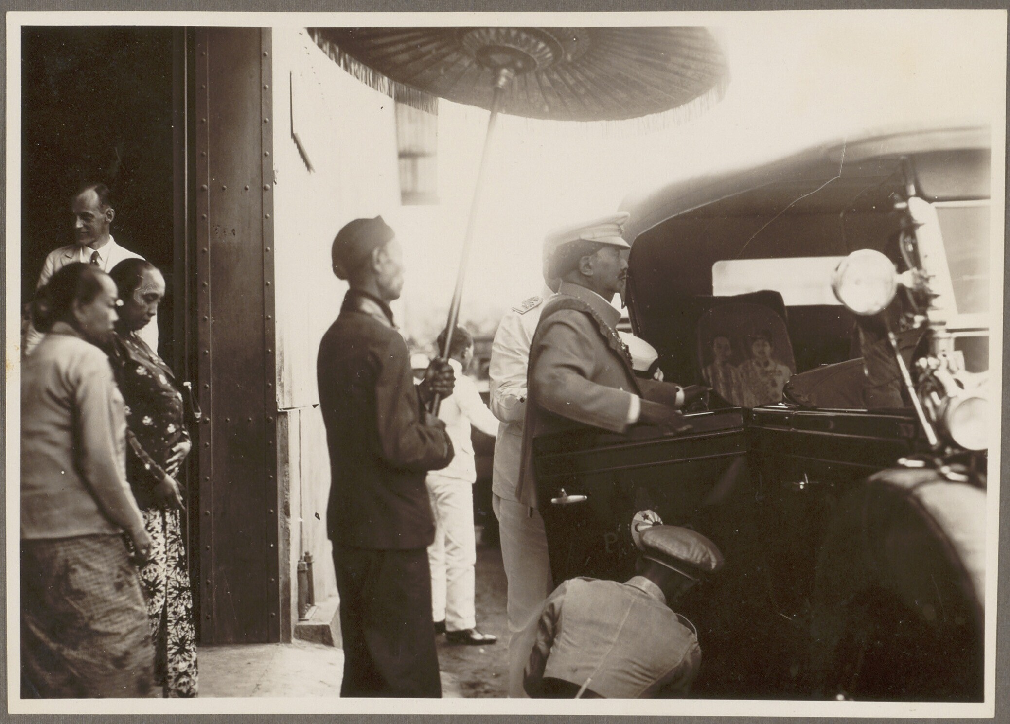 Pakoe Boewono X in de auto stappend bij zijn vertrek...
