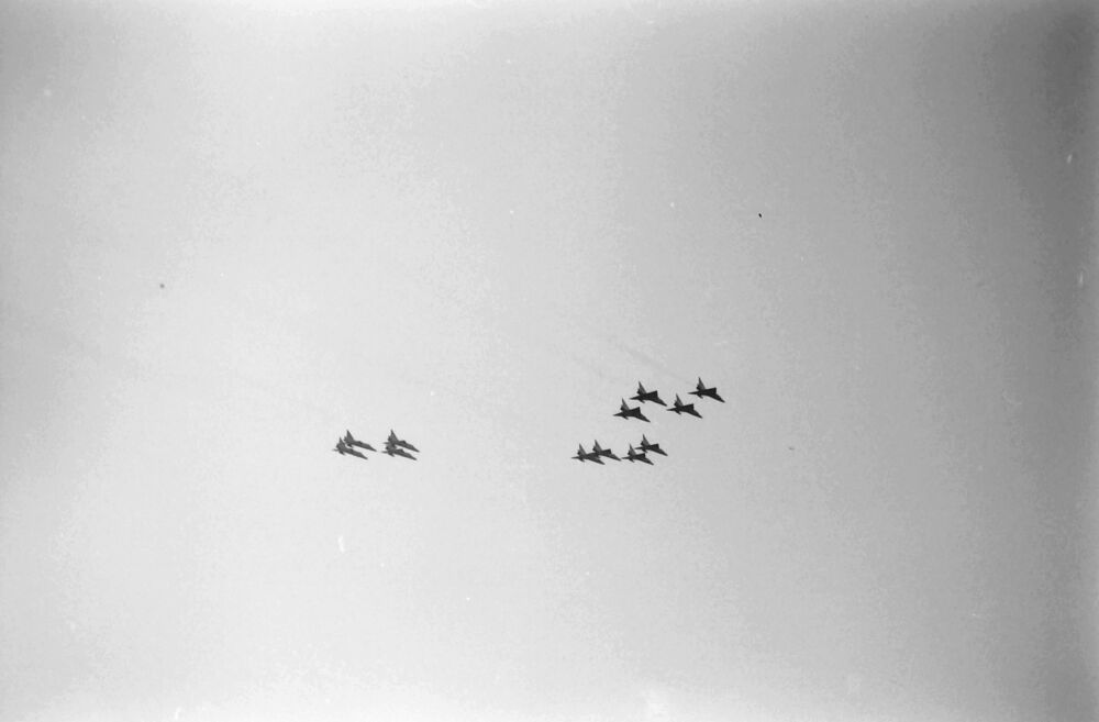 Convair F-102A Delta Dagger USAF 32 FIS in formatiev...