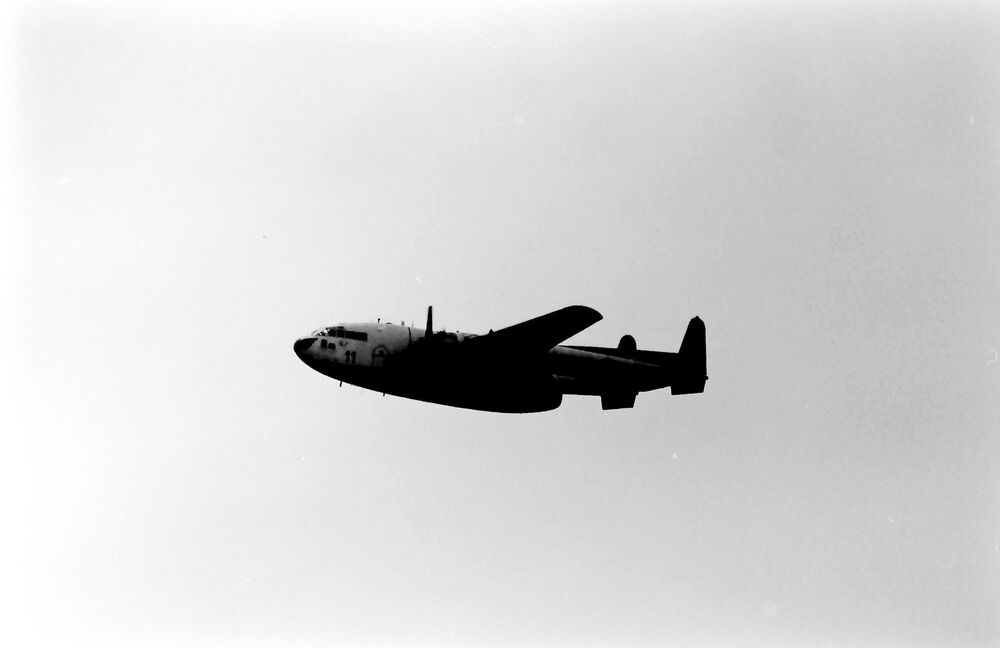 Fairchild C-119 Flying Boxcar 22 in de vlucht.