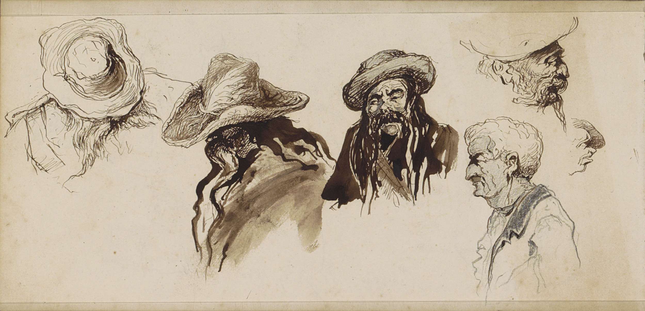 Mannenkoppen met verschillende hoofddeksels en een s...