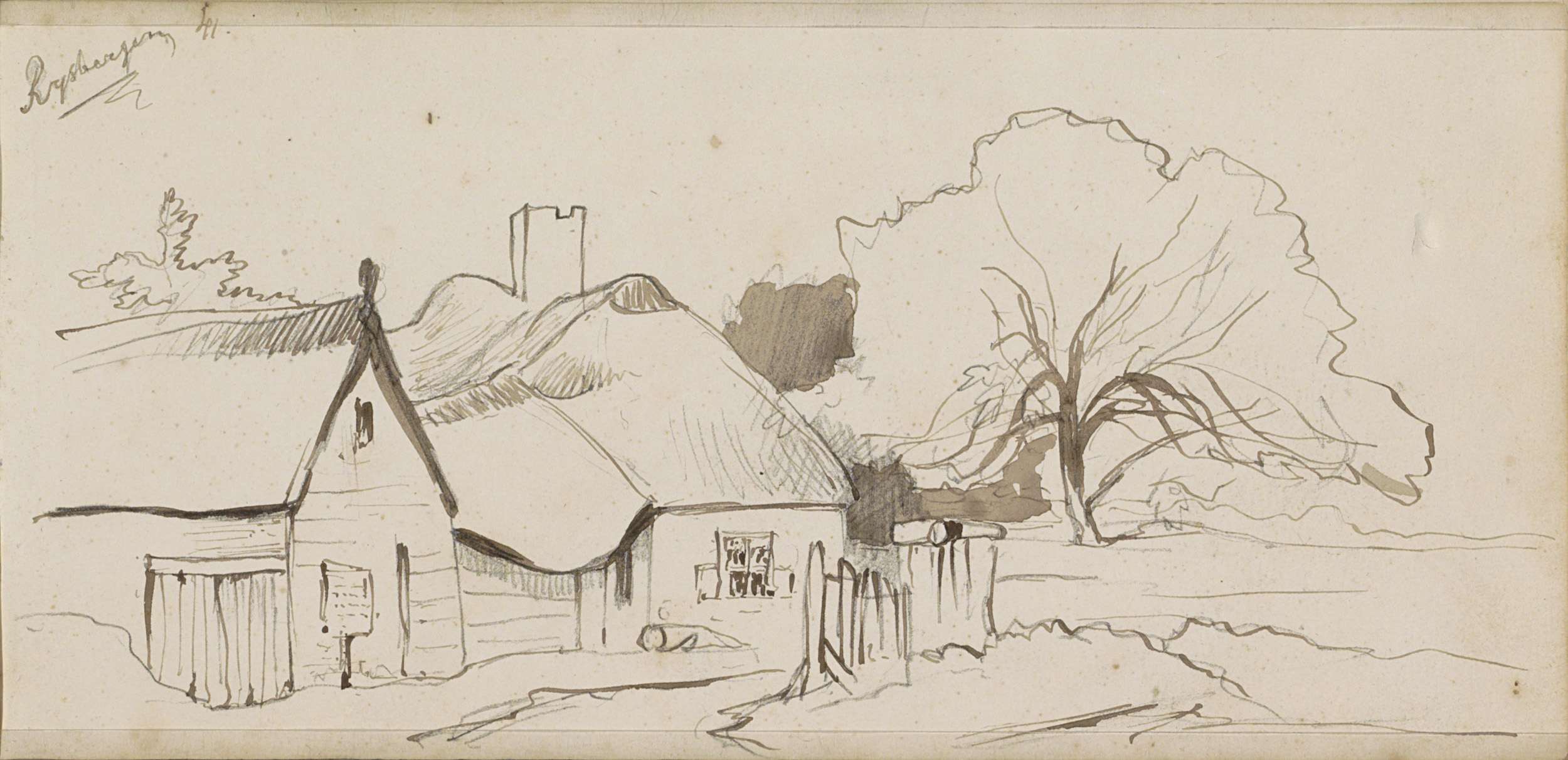 Landschap met een boerderij met rieten kap in Rijsbe...